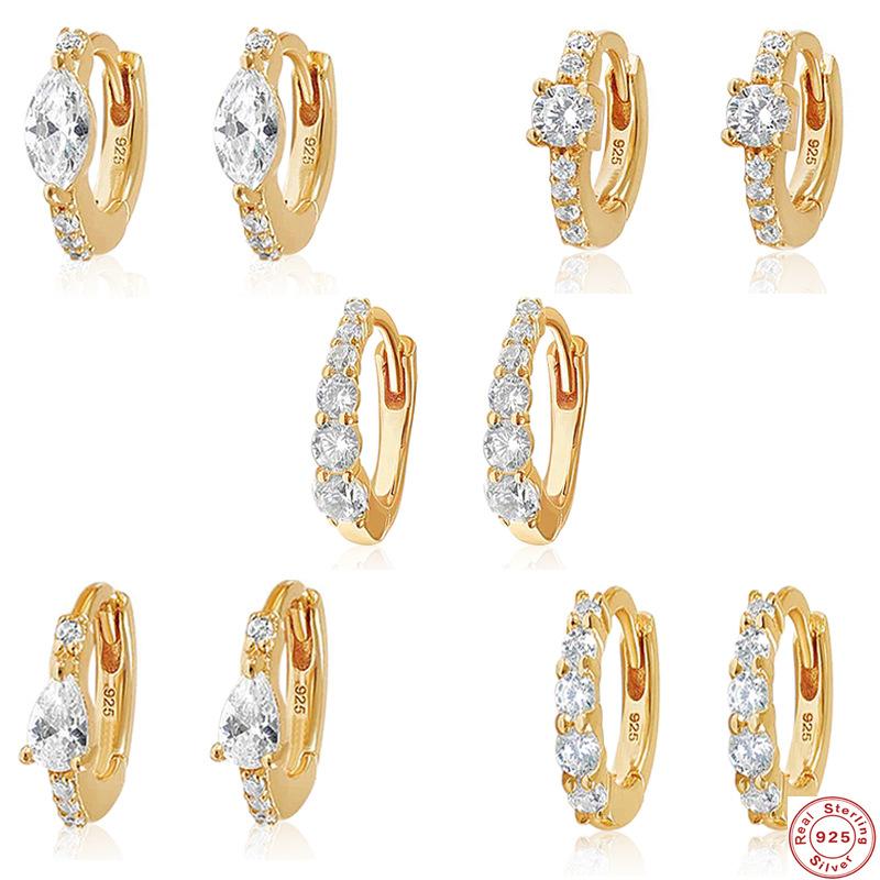 Роскошный набор с бриллиантами Премиум Серьги-кольца с пряжкой для ушей Модные серьги Серьги Серьги Пряжка для ушей Стерлинговое серебро S925