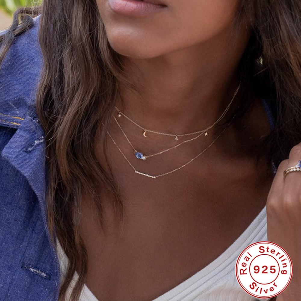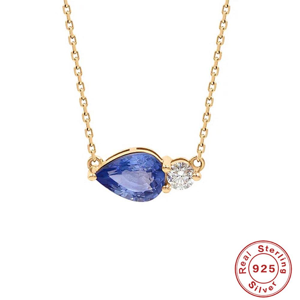 Модное ожерелье из серебра 925 пробы с геометрическим узором, высокого класса, с синим грушевидным драгоценным камнем и женским ключичным узором