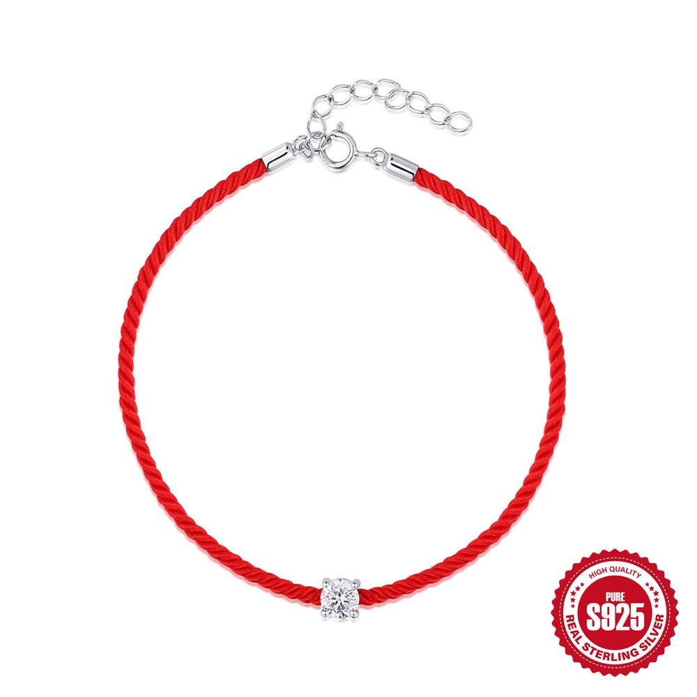 S925 стерлингового серебра одиночный бриллиант моцарелла красный шнур женский браслет с тем же браслетом удачи браслет ювелирные изделия