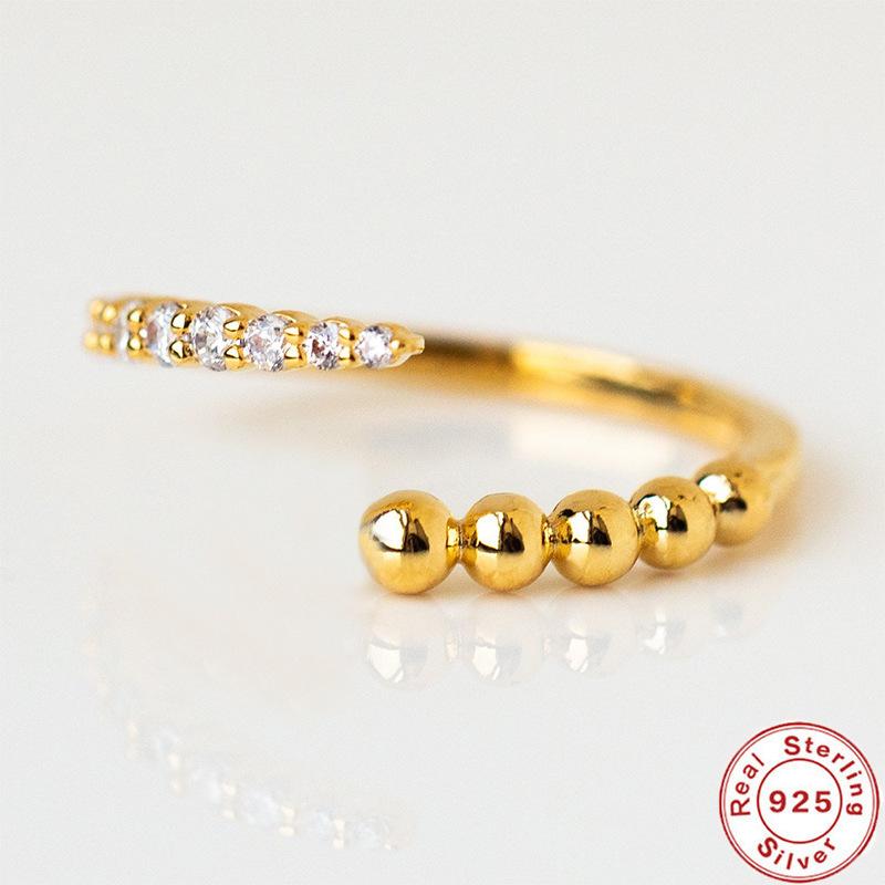 Кольцо из стерлингового серебра 925 пробы с бриллиантами и золотыми бусинами, кольцо с открытой шинкой, персонализированное, универсальное, простое женское кольцо с бриллиантами
