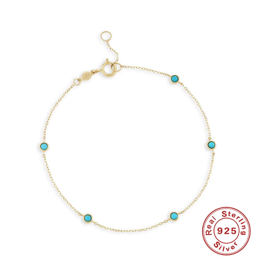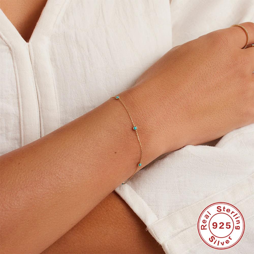 Модный браслет из стерлингового серебра S925 в стиле Ins, простой для повседневной носки, с пятью бирюзовыми вставками, простой бирюзовый браслет для ношения в несколько рядов