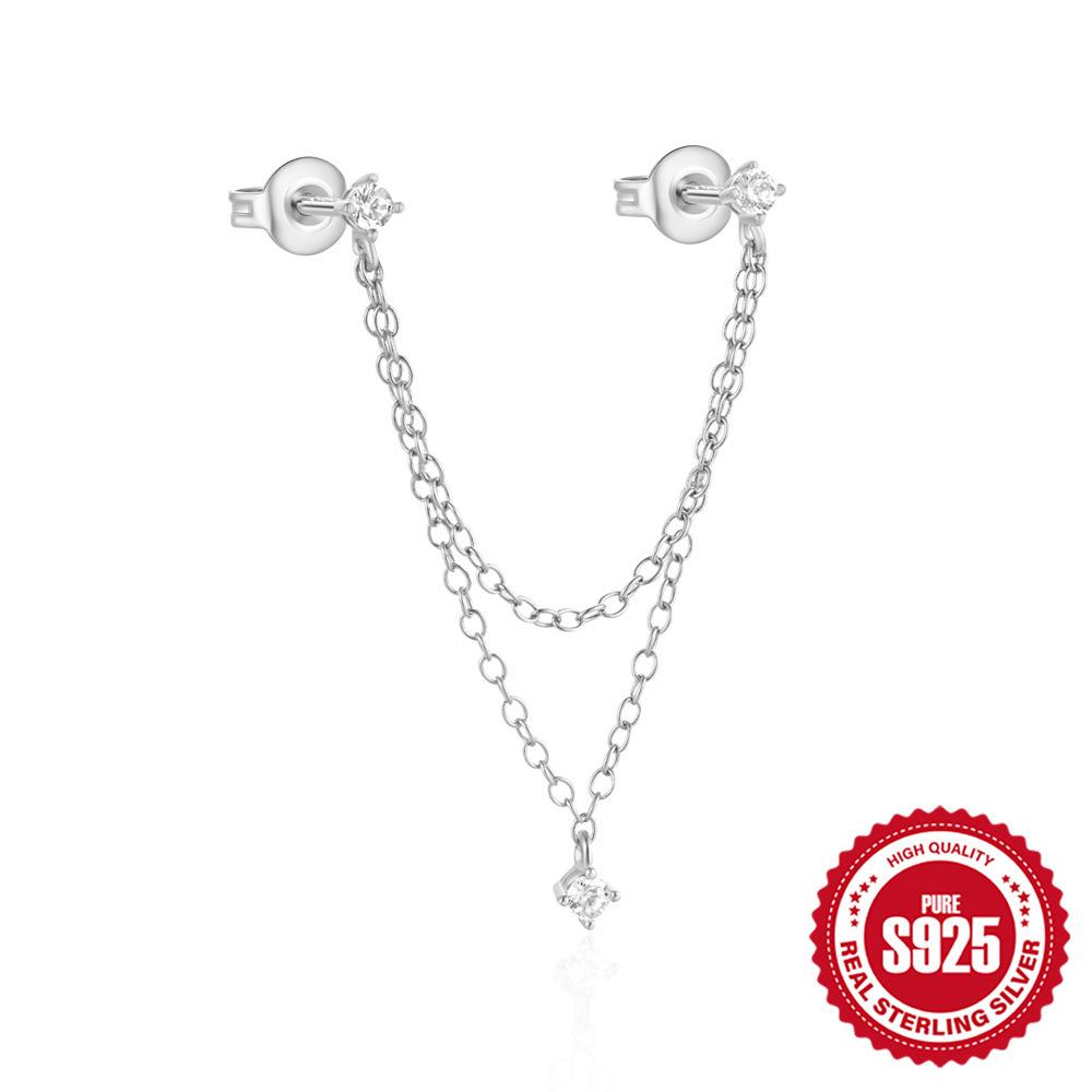 Стильные и простые серьги-цепочки с бахромой в форме сердца из стерлингового серебра S925, инкрустированные бриллиантами, серьги-пусеты, серьги-подвески для женщин