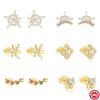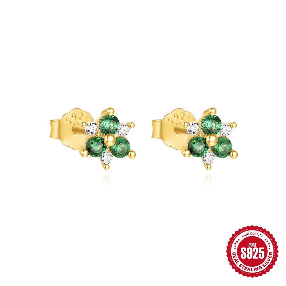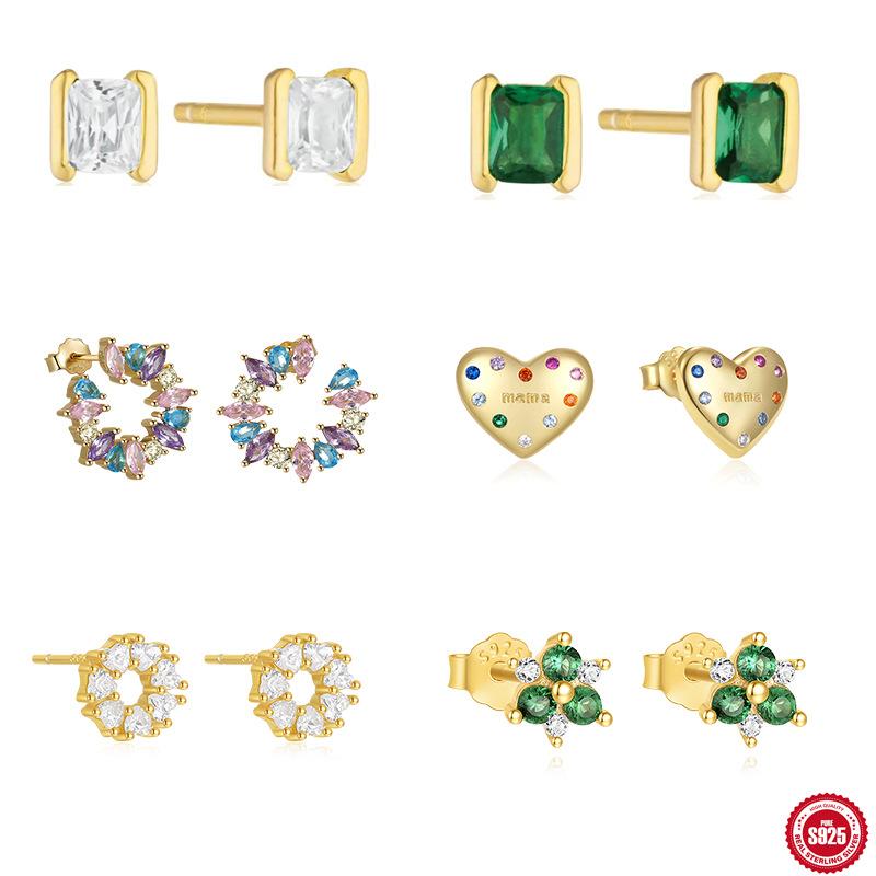 Simple And Stylish S925 Sterling Silver Rectangular Bag Set With Firm Atmosphere Love Flower Versatile Stud Earrings