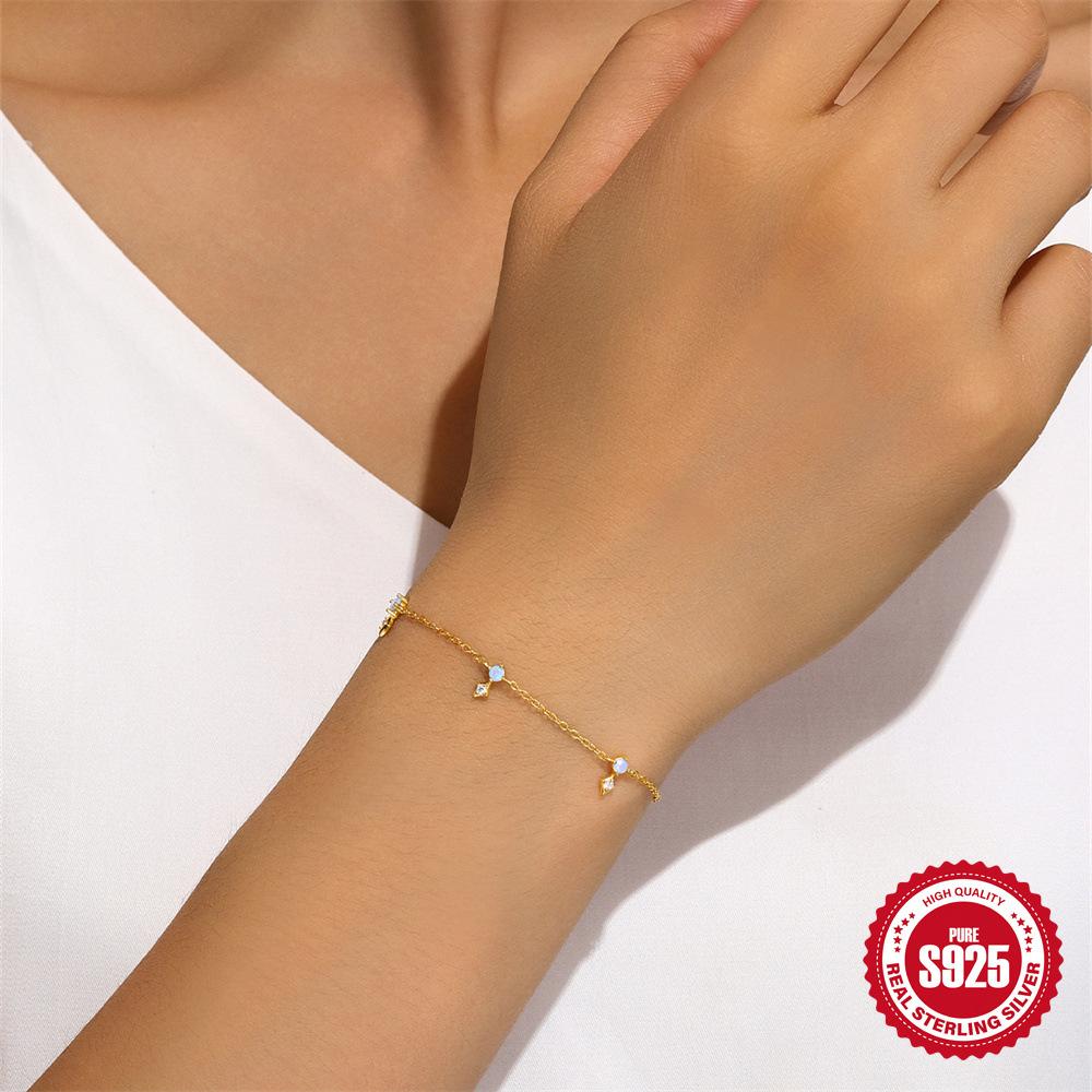 S925 Sterling Silver Star Blue Opal Opal Explosive Temperament Ins Simple Wind Stacked Bracelet