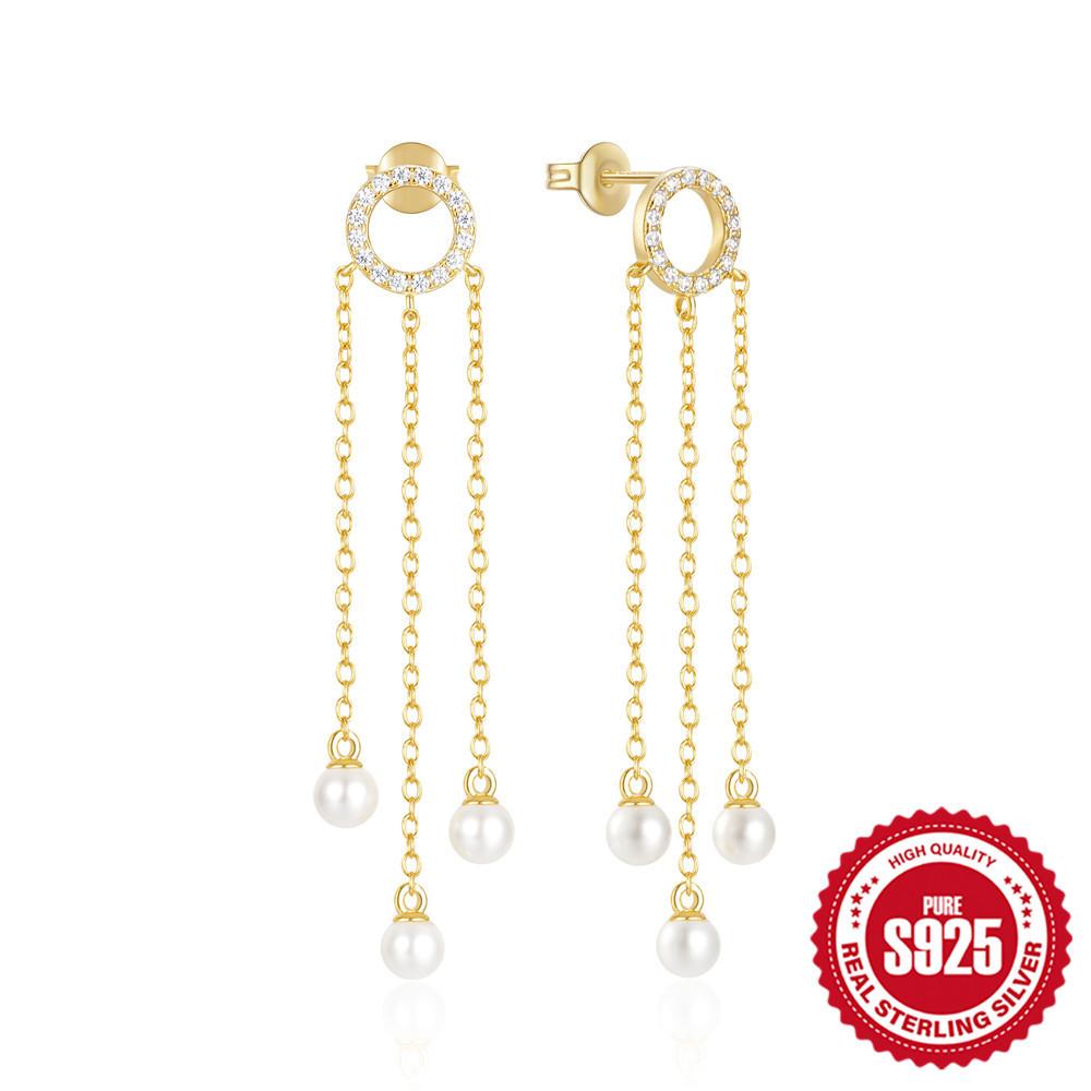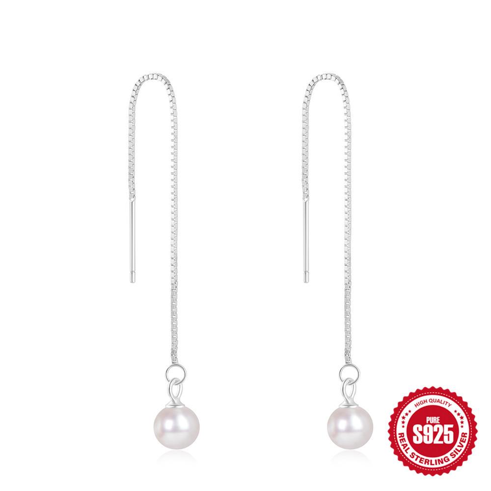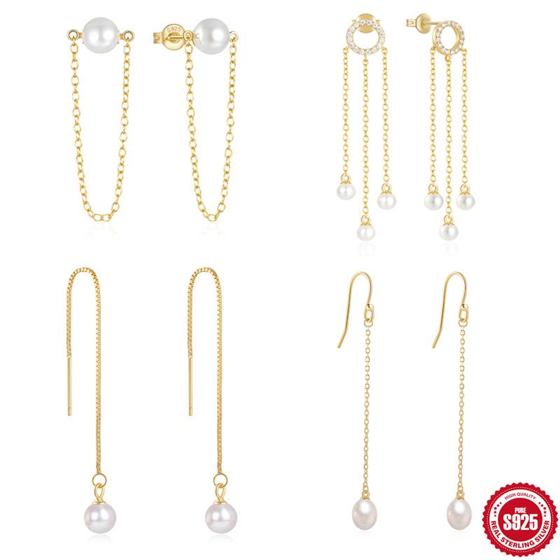 Серебро 925 пробы Темперамент Мода Кисточка Длинная цепочка Жемчуг Индивидуальность Серьги Серьги Серьги Серьги Жемчужные серьги