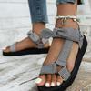 Женские сандалии на плоской подошве с бантом в клетку из Европы и Америки - Коллекция Лето 2021, Доступны большие размеры