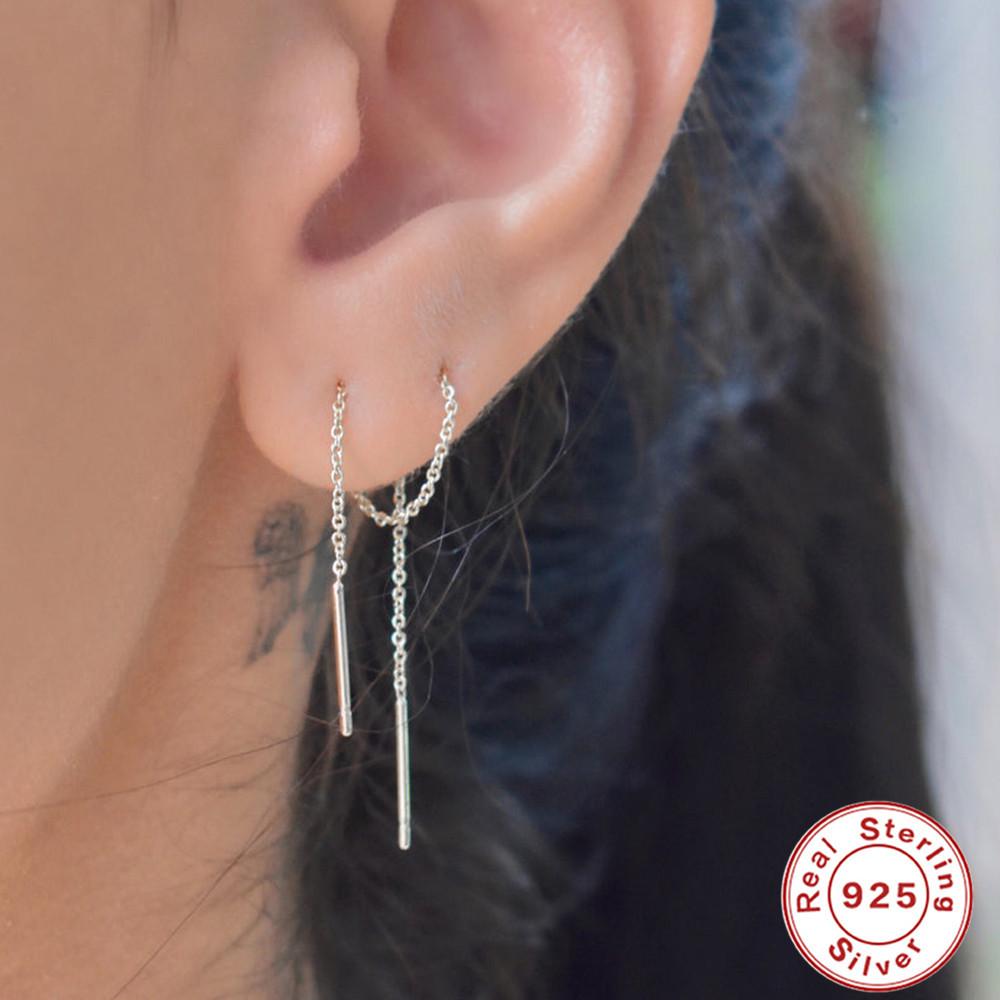 Серьги-цепочки с бриллиантами из стерлингового серебра 925 пробы, персонализированная кисточка, Trendy Love, геометрический холодный ветер, креативные наушники