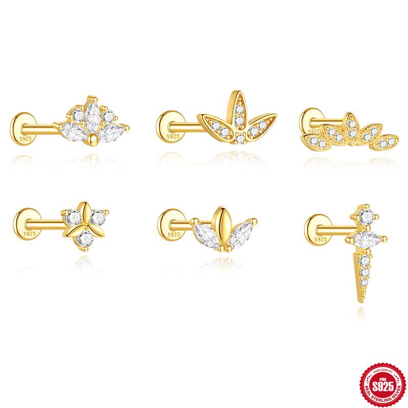 S925 Sterling Silver Horse Eye With Zircon Design Sense, A Simple, Small, Exquisite And Simple Earrings 16G Earrings