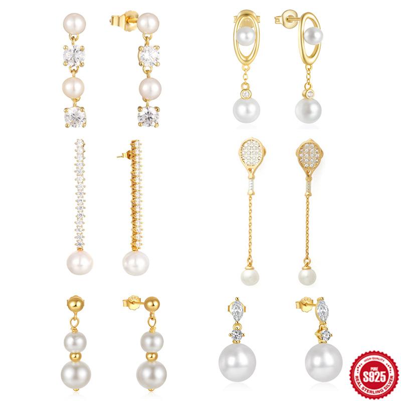 Серьги-подвески из стерлингового серебра 925 пробы в простом стиле Ins, удобные женские серьги с премиальным дизайном и жемчугом — купить товар онлайн с бесплатной доставкой по всему миру!
