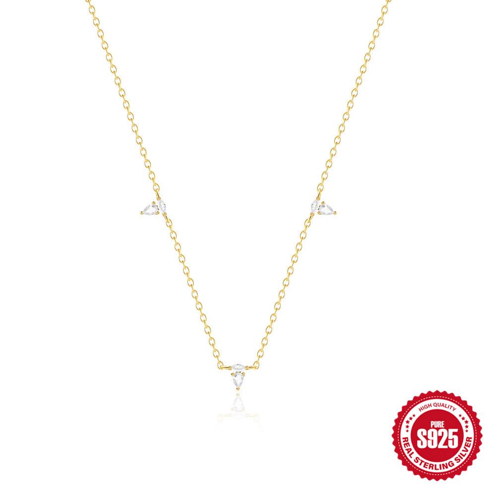 S925 Sterling Silver Geometric Diamond-Set Temperament Clavicle Necklace Irregular Zircon Versatile Necklace