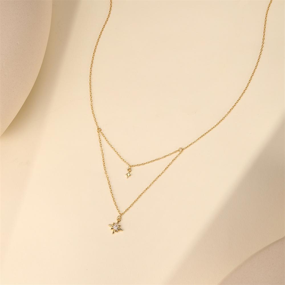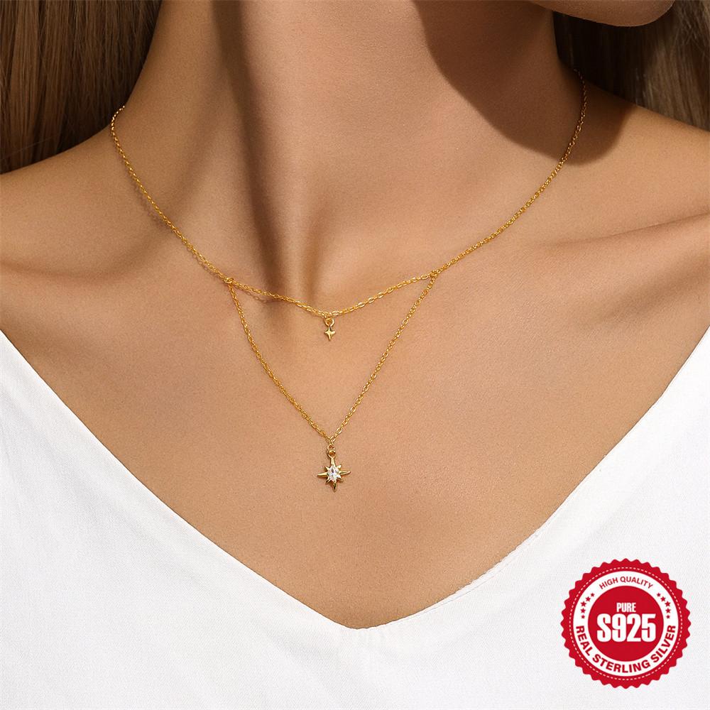 Ветреный коммутационный простой износ S925 стерлингового серебра Octagram Stacked Quadrangram двойной универсальный ожерелье ключицы цепь
