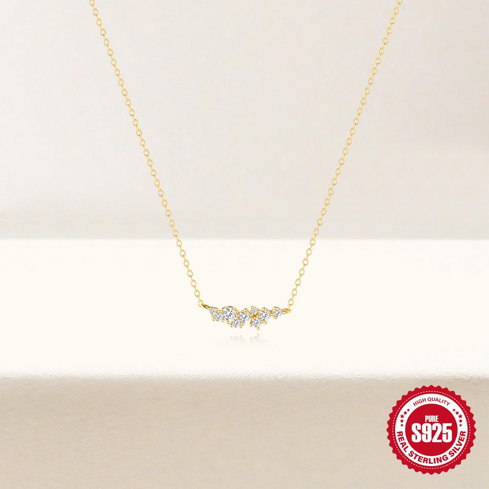 Simple S925 Sterling Silver Geometric Diamond Set Versatile Commuter Accessories Irregular Fashion Collarbone Chain Necklace