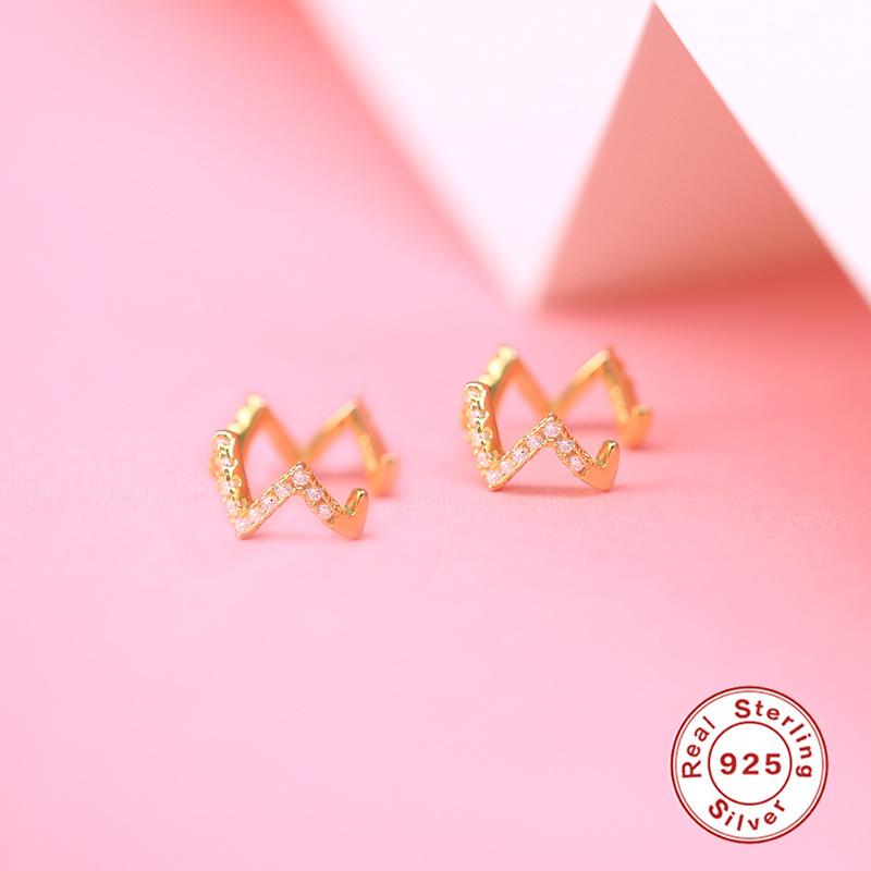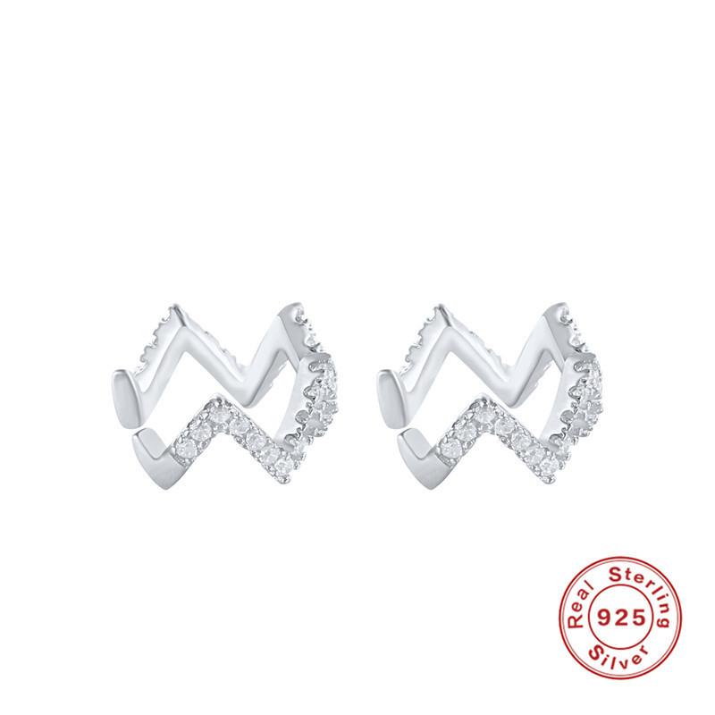 Серьги-клипсы на косточку уха из стерлингового серебра S925, волна, в стиле инс, простые, с бриллиантовой вставкой, для ушей без пирсинга, женские серьги