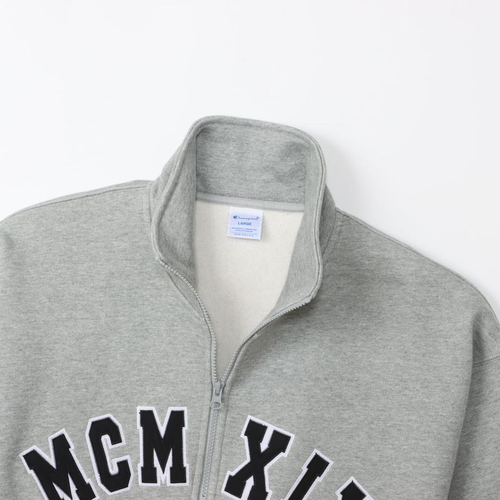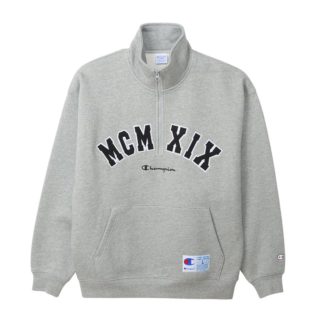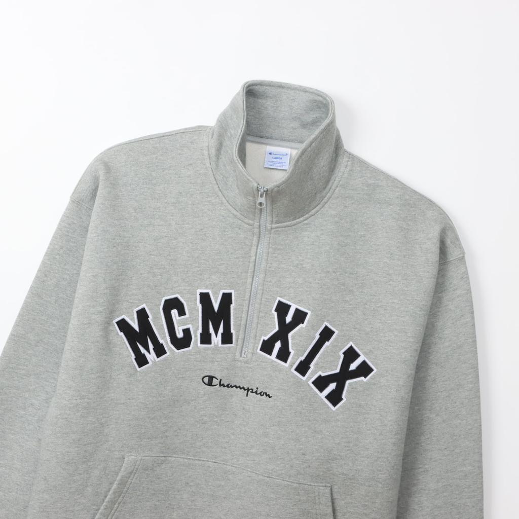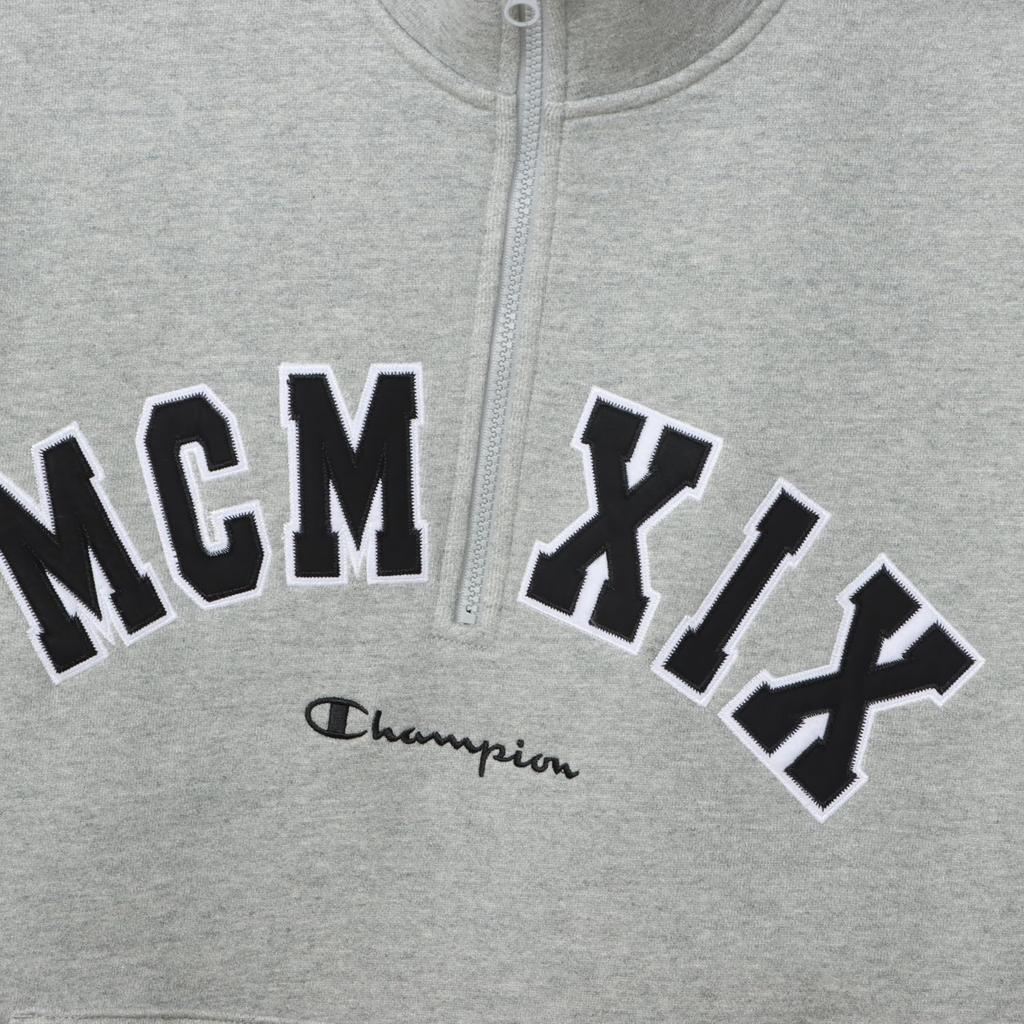 Толстовка с длинным рукавом из хлопка, США, свободный крой, вышитый логотип, полумолния, толстовка в стиле экшн, цвет оксфорд, серый [Champion] C3-A019 для мужчин
