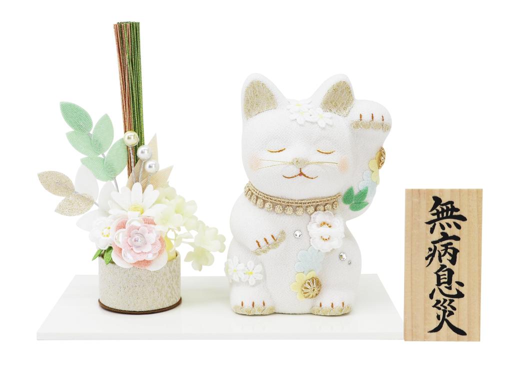 Osaka Choseido Lucky Cat, изготовленный из Welcome Spring Height, поставляется с бесплатным оригинальным деревянным украшением в виде легкого цветка в виде кошки, креп, украшение, 15,5 см, бирка,