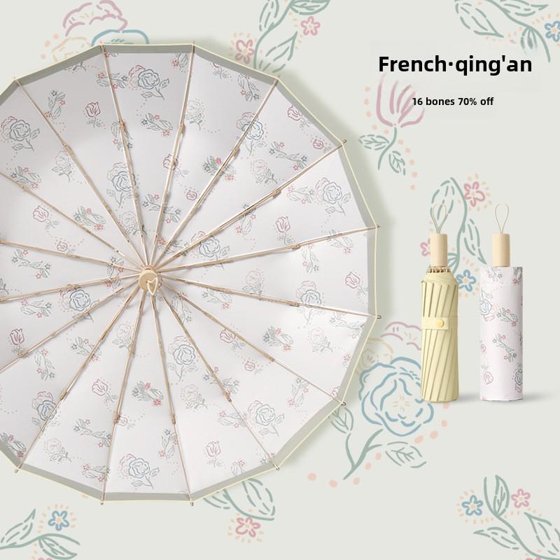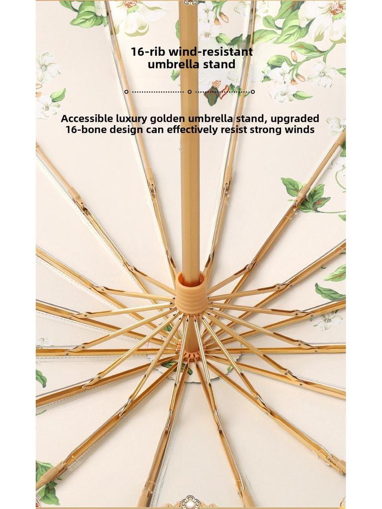 Зонт солнцезащитный большой с 16 костями – устойчив к УФ-излучению, складной, двойного назначения: для солнца и дождя