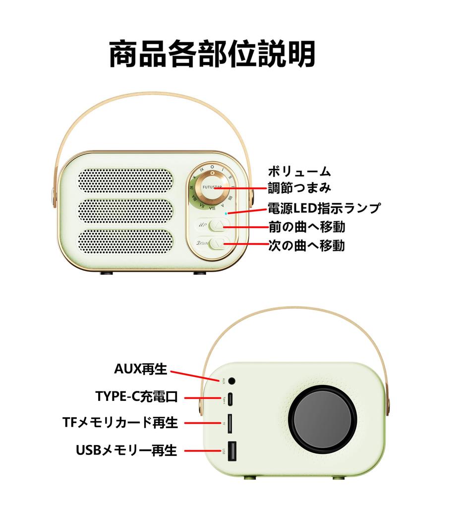 [Мини-ретро-динамик] Симпатичный и портативный динамик. В комплект входят кабели AUX и TYP-C.