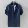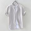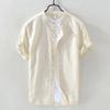 Мужская модная повседневная белая рубашка из хлопка и льна с коротким рукавом
