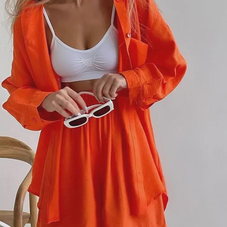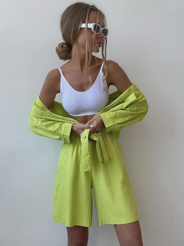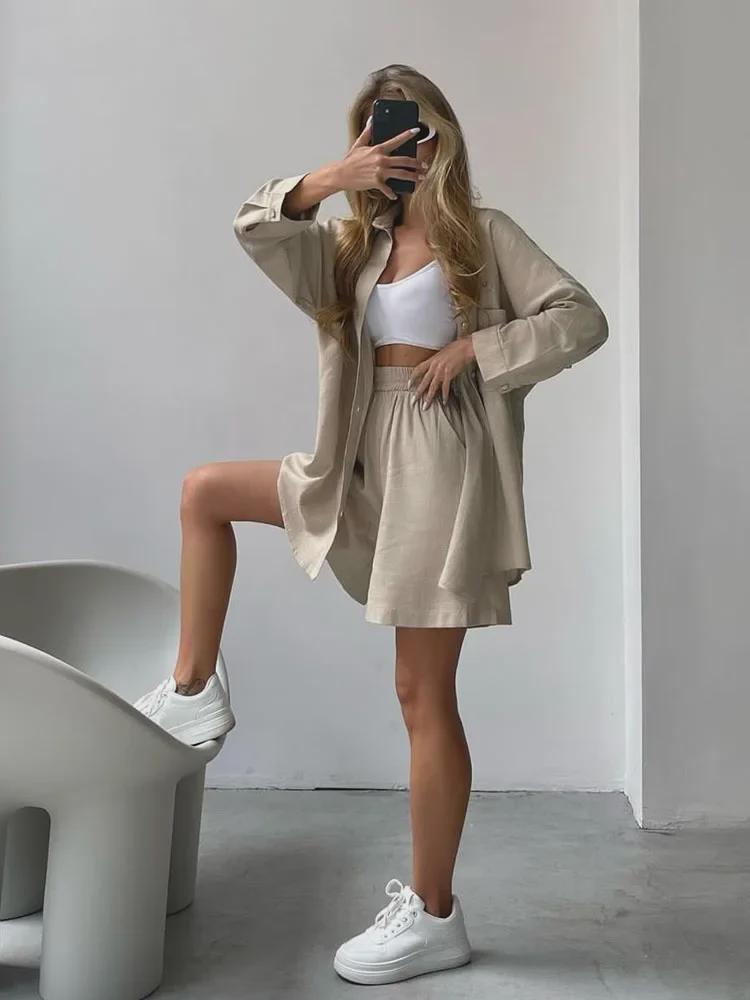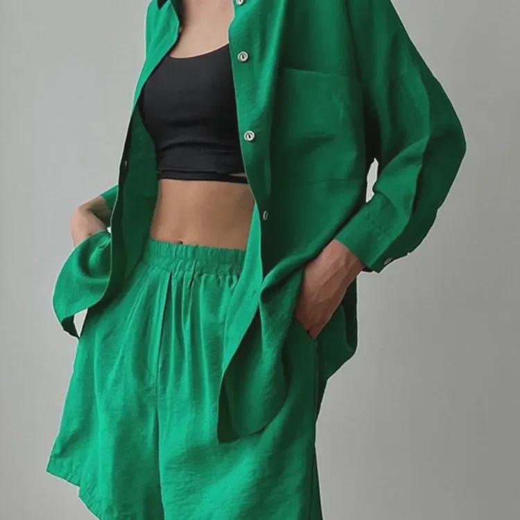 Дополните свой гардероб для теплой погоды этим универсальным комплектом из хлопковой рубашки и шорт.. Этот комплект с однотонным узором, выполненный из высококачественного хлопка, предлагает спортивный стиль, который идеально подходит для повседневных прогулок или неформальных встреч.. Рубашка имеет классический дизайн лацканов, что добавляет нотку изысканности, а широкие шорты обеспечивают комфорт и свободу движений.. Оба изделия тщательно продуманы и оснащены практичными карманами, что повышает как функциональность, так и стиль.. Независимо от того, отправляетесь ли вы на бранч или наслаждаетесь солнечным днем, этот комплект обеспечит вам непринужденный шик и комфорт.