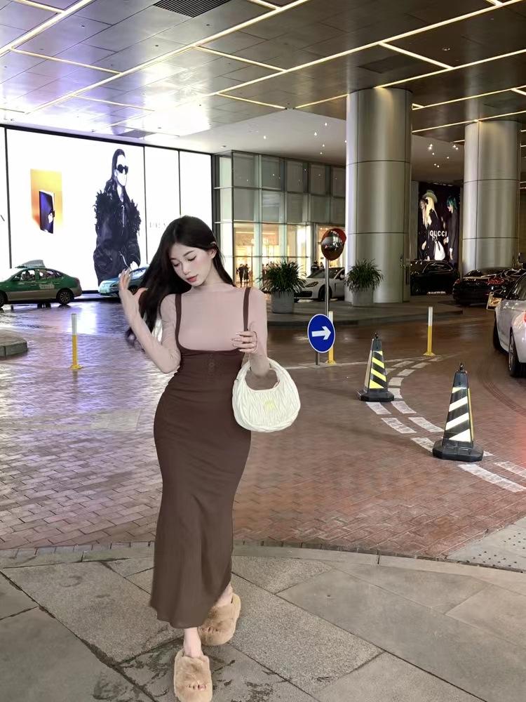 Почувствуйте элегантность и тепло в этом изысканном костюме, созданном специально для холодного времени года.. Этот комплект из двух предметов средней длины включает в себя красиво сшитое облегающее платье, которое искусно облегает бедра, подчеркивая ваш естественный силуэт.. Платье изготовлено из высококачественного полиэстера и дополнено роскошным мехом деронг, что добавляет образу нотку роскоши.. Этот наряд идеально подходит для осени и зимы, он легко сочетает в себе стиль и комфорт, что делает его идеальным выбором как для повседневных, так и для полуофициальных мероприятий.