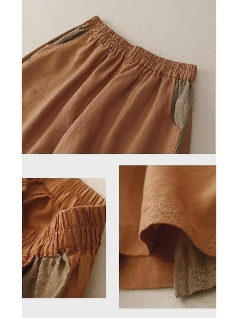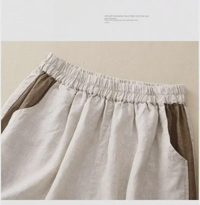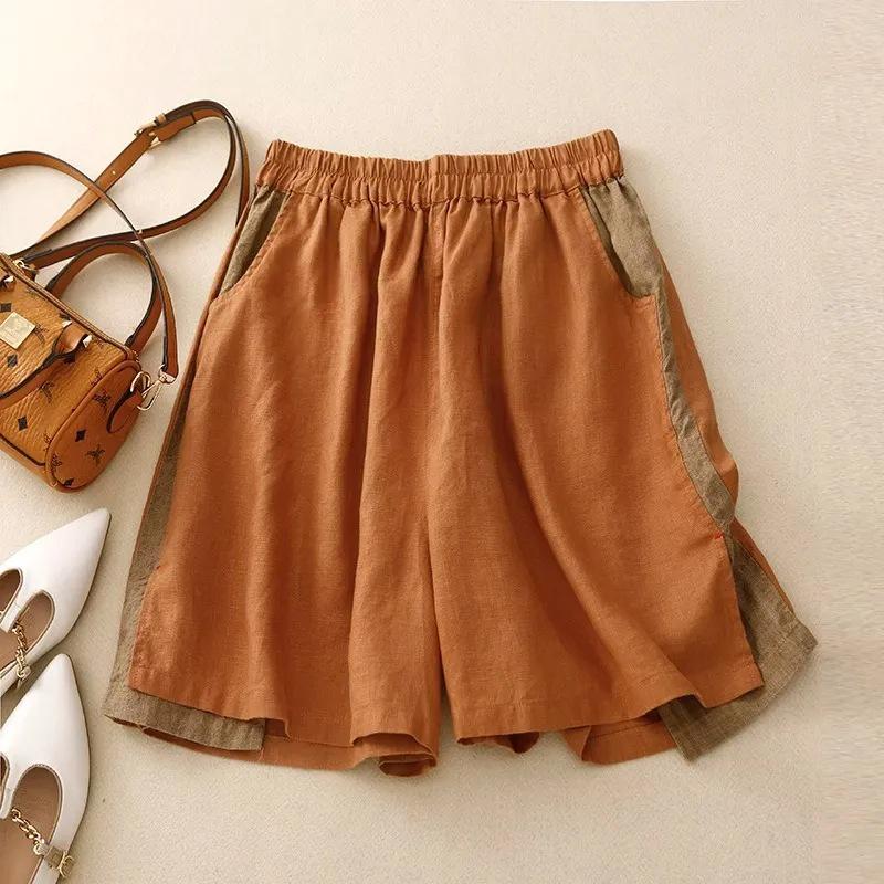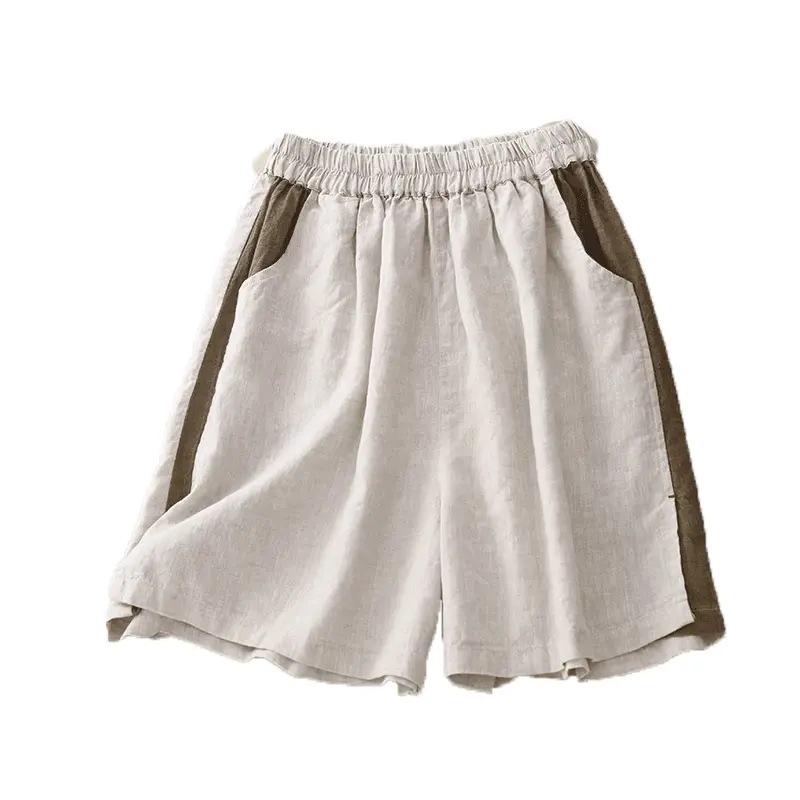 Женские летние шорты 2024 года из хлопка и льна с эластичной талией, свободные, с пятью точками, широкие штанины