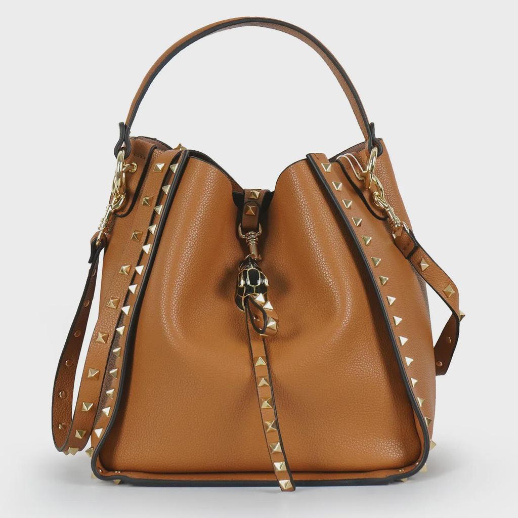 Сумка-ведро из натуральной кожи с заклепками и рисунком в виде головы тигра — купить товар онлайн с бесплатной доставкой по всему миру!