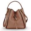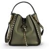 Сумка-ведро из натуральной кожи с заклепками и рисунком в виде головы тигра