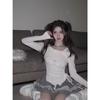 Женская черная футболка с открытыми плечами и длинными рукавами в корейском стиле - Весна/Осень 2023 г., утягивающий дизайн