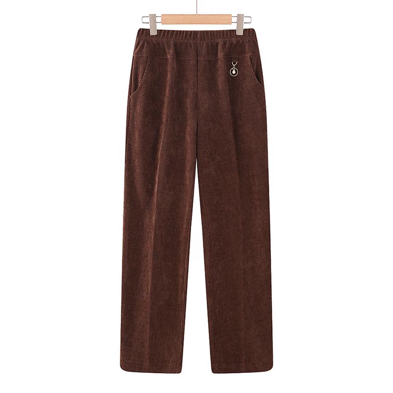 Почувствуйте комфорт и тепло в этих вельветовых брюках с бархатной подкладкой, которые идеально подойдут женщинам среднего и пожилого возраста в осенне-зимний период.. Эти брюки, изготовленные из прочного полиэстера, отличаются как стилем, так и практичностью.. Спортивный стиль обеспечивает легкость движений, а функциональные карманы добавляют удобства.. Эти плотные и уютные брюки идеально подходят для сохранения тепла в холодную погоду. Они гармонично сочетают в себе моду и функциональность.