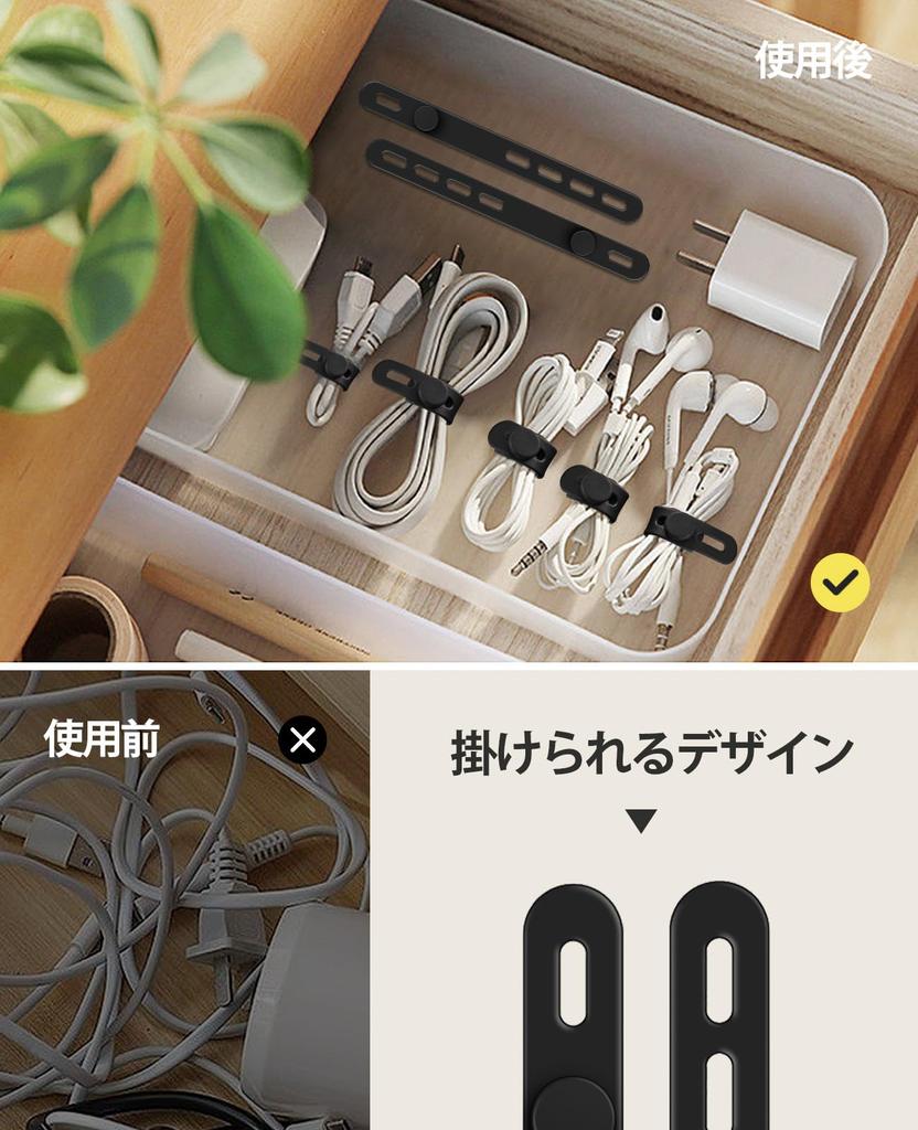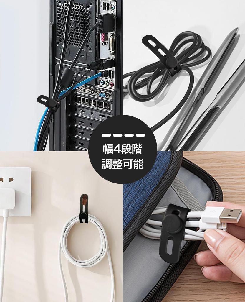 [4 регулируемых отверстия] Толщина пучка относительно гибкая, и вы можете использовать его более удобно, удлиняя его. Этот бандаж для кабеля рекомендуется тем, кто хочет менять положение кабеля в зависимости от ситуации, или тем, кто использует несколько бандажей для кабеля одновременно.