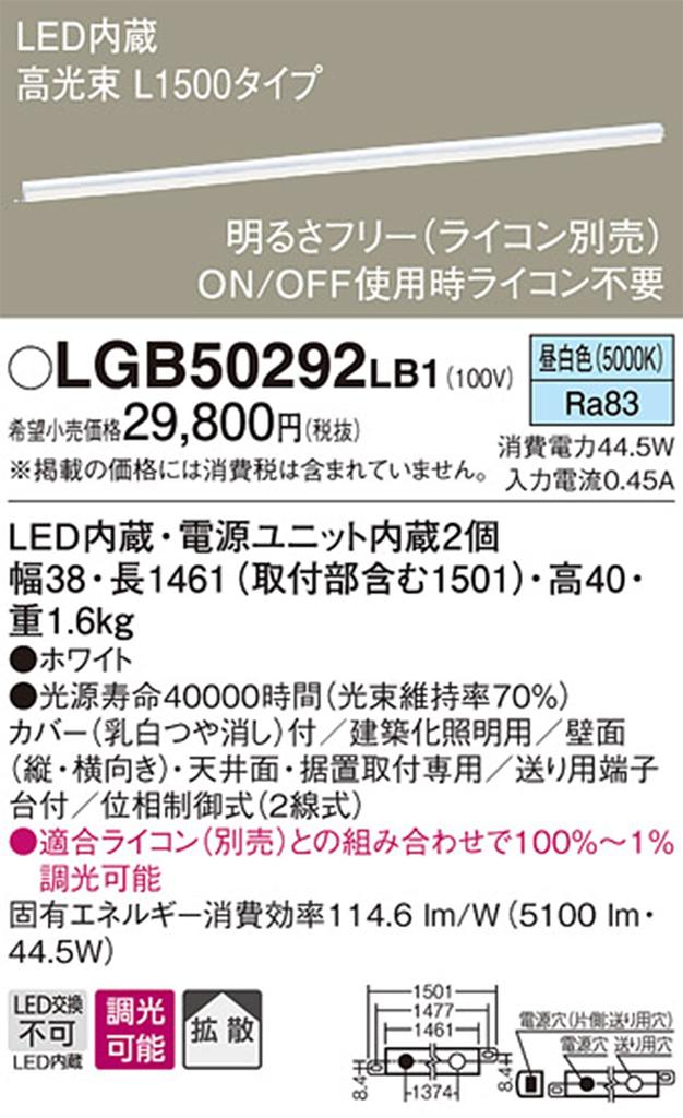 Panasonic Базовая линия освещения Тип высокой мощности LGB50292LB1 Тип L1500 Нейтральный белый Глубина Высота 4см Ширина Корпус 3.8см Корпус Корпус 146.1см