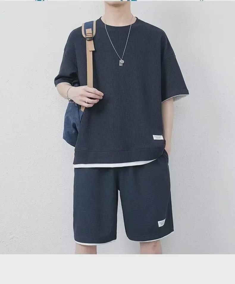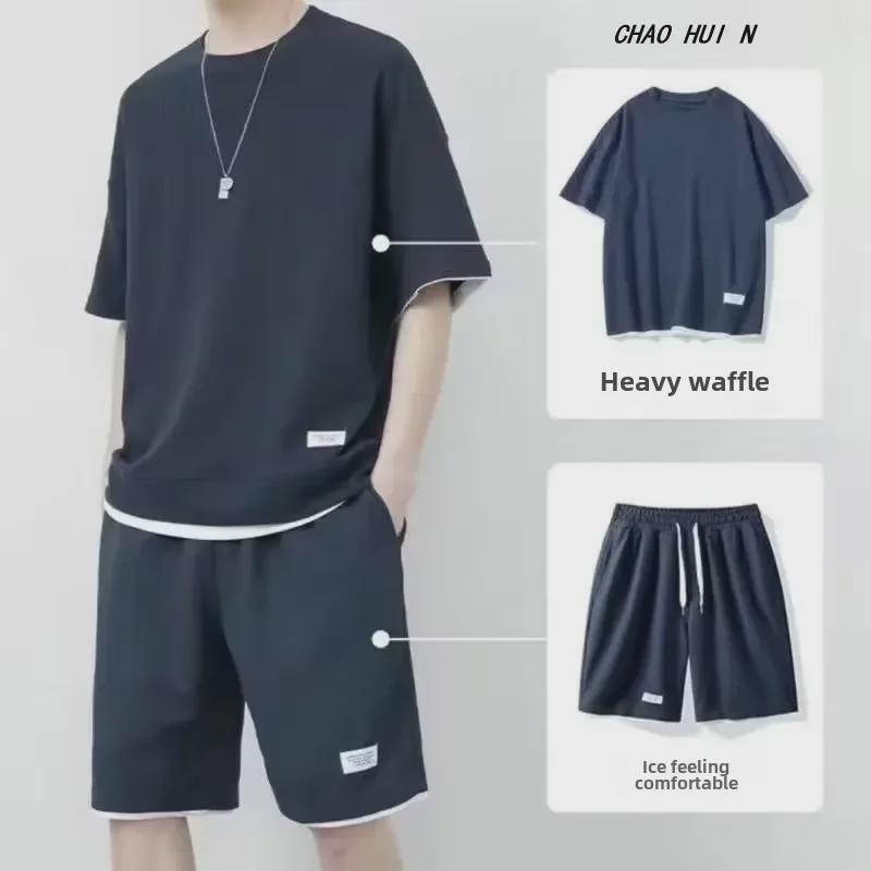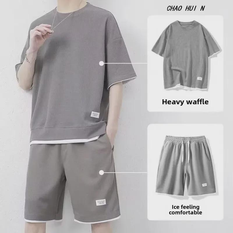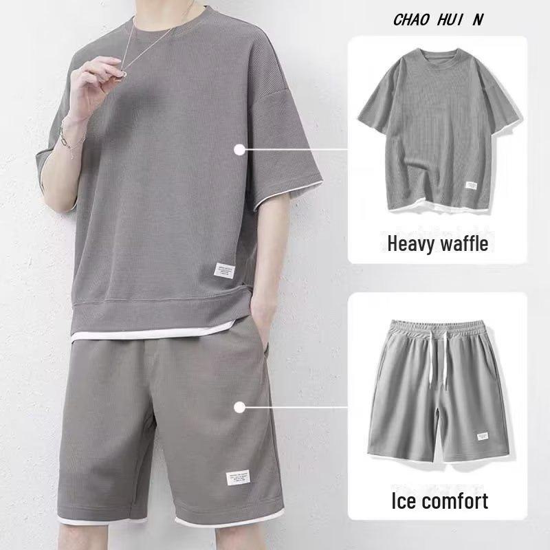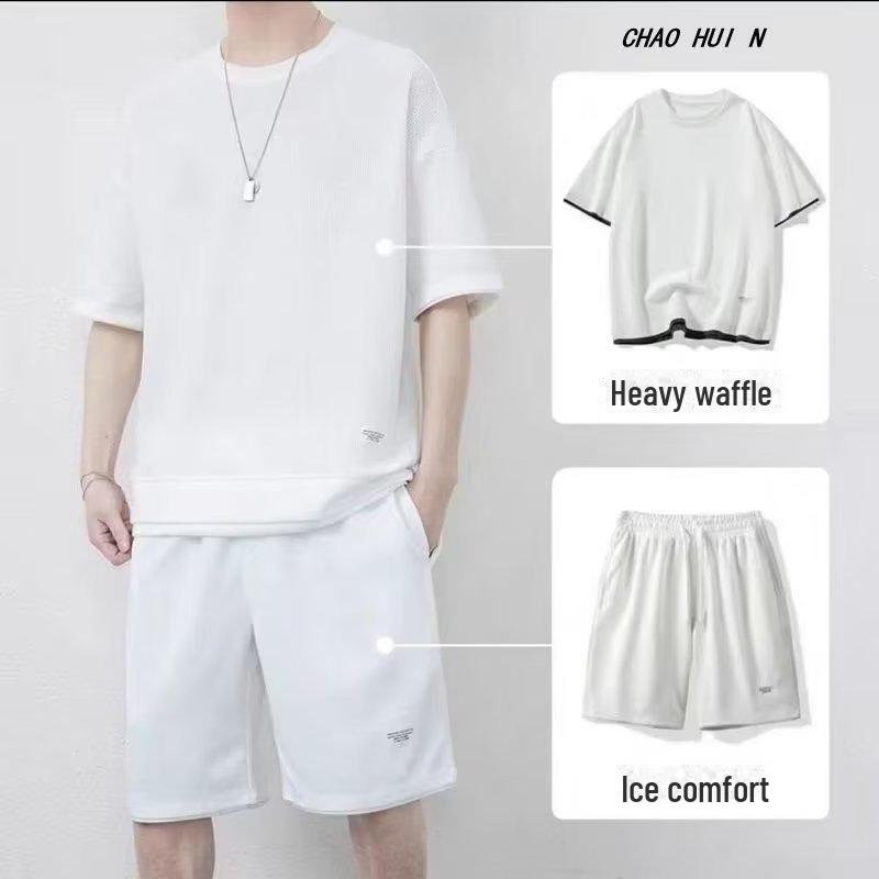 Мужская спортивная футболка и шорты Ice Silk Waffle Suit - модная летняя повседневная одежда