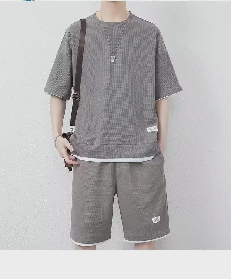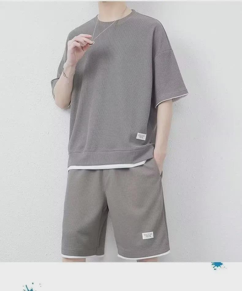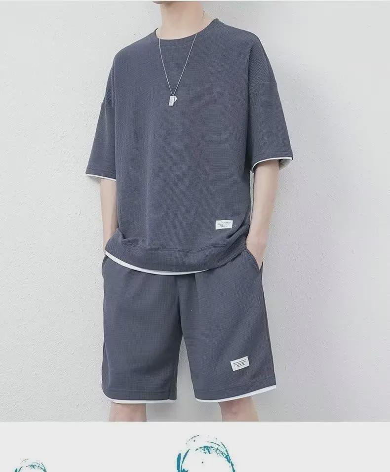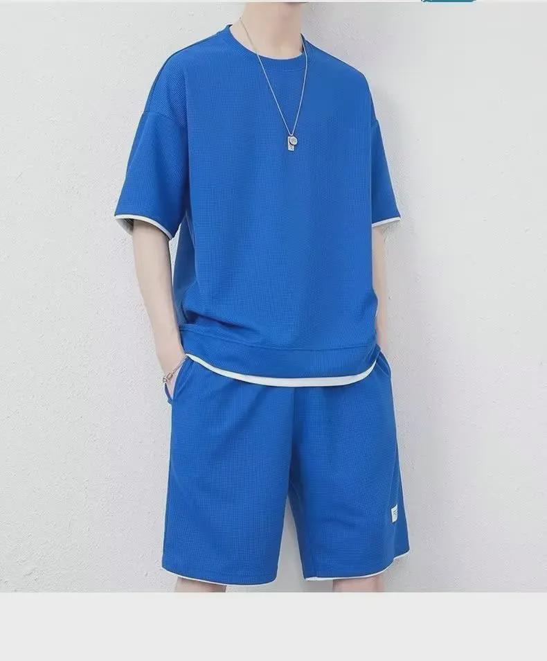 Мужская спортивная футболка и шорты Ice Silk Waffle Suit - модная летняя повседневная одежда