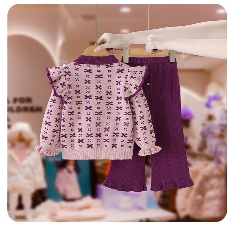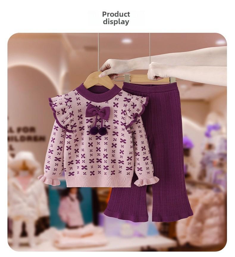 Комплект из вязаного свитера и брюк-клеш для девочек на осень/зиму – модный комплект из двух предметов для малышей и малышек