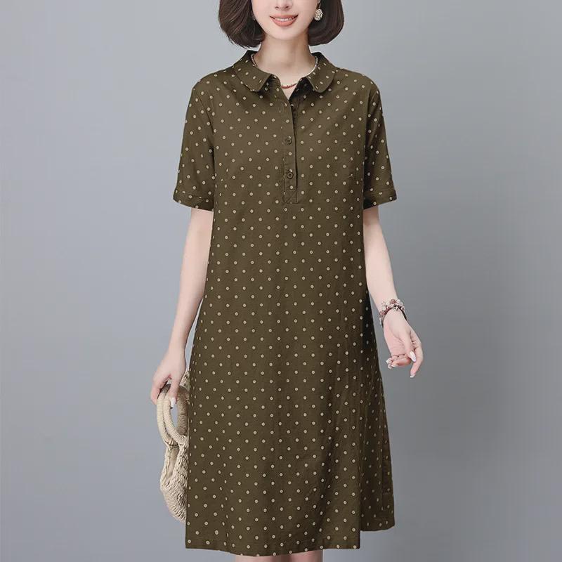 Летнее платье в горошек из хлопка и льна 2024 года — женское, французский стиль, размер плюс, длинная юбка