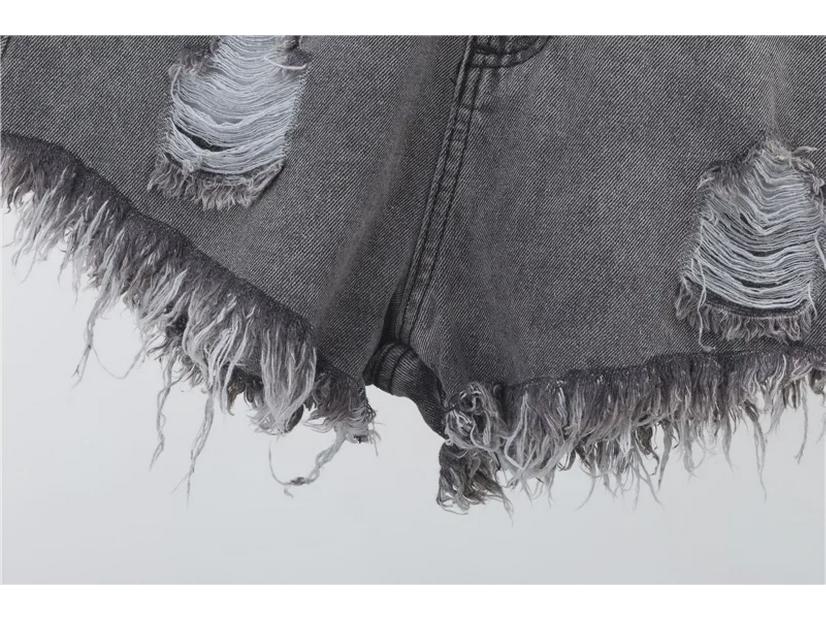 Женские рваные джинсовые шорты с высокой талией больших размеров — летний свободный крой, необработанный край, А-образный фасон