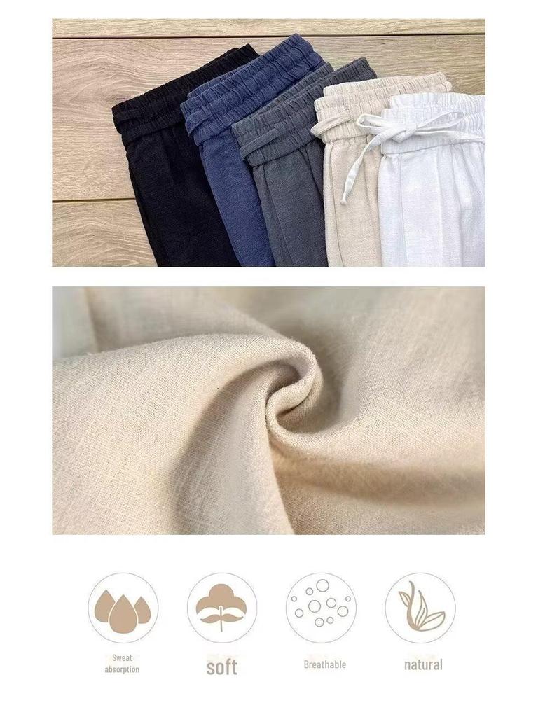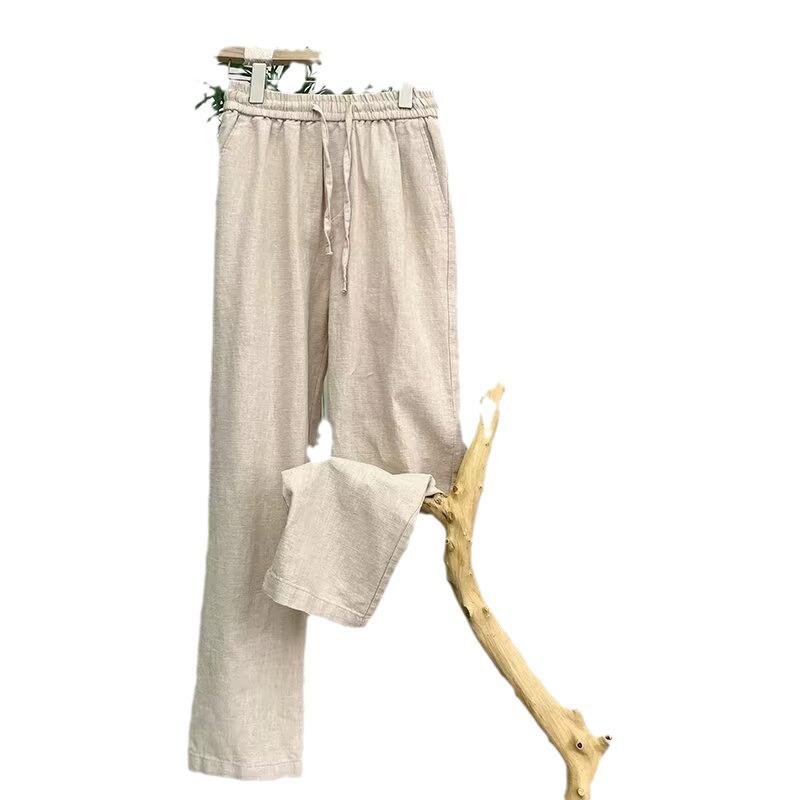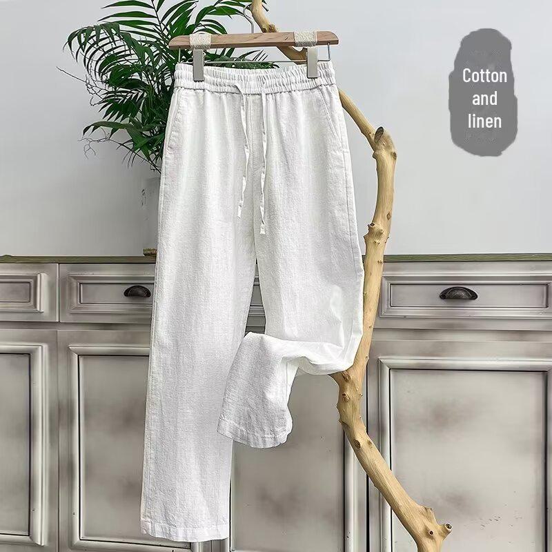 Мужские летние льняные брюки - легкие, белые, в китайском стиле, повседневные, свободного кроя