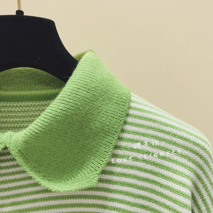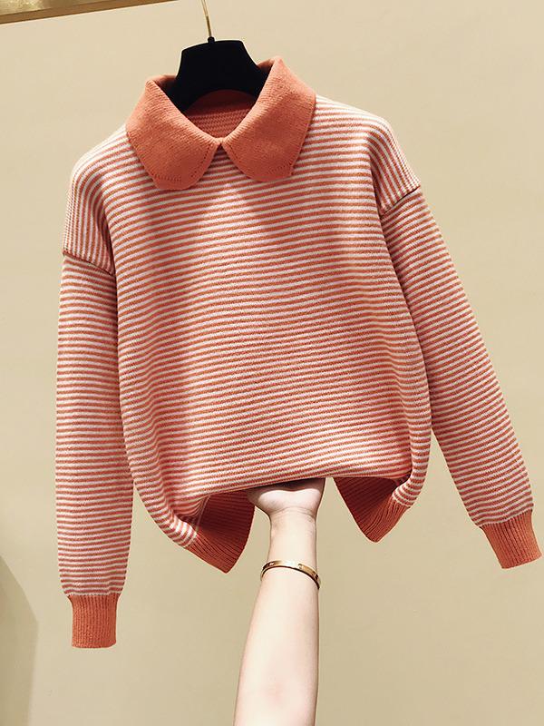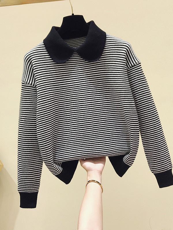 Женский свободный свитер-пуловер - осень 2024 г., воротник в стиле корейской куклы, плотная вязка