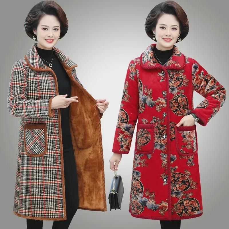 Теплое бархатное пальто с цветочным принтом и кристаллами для женщин среднего и пожилого возраста — купить товар онлайн с бесплатной доставкой по всему миру!