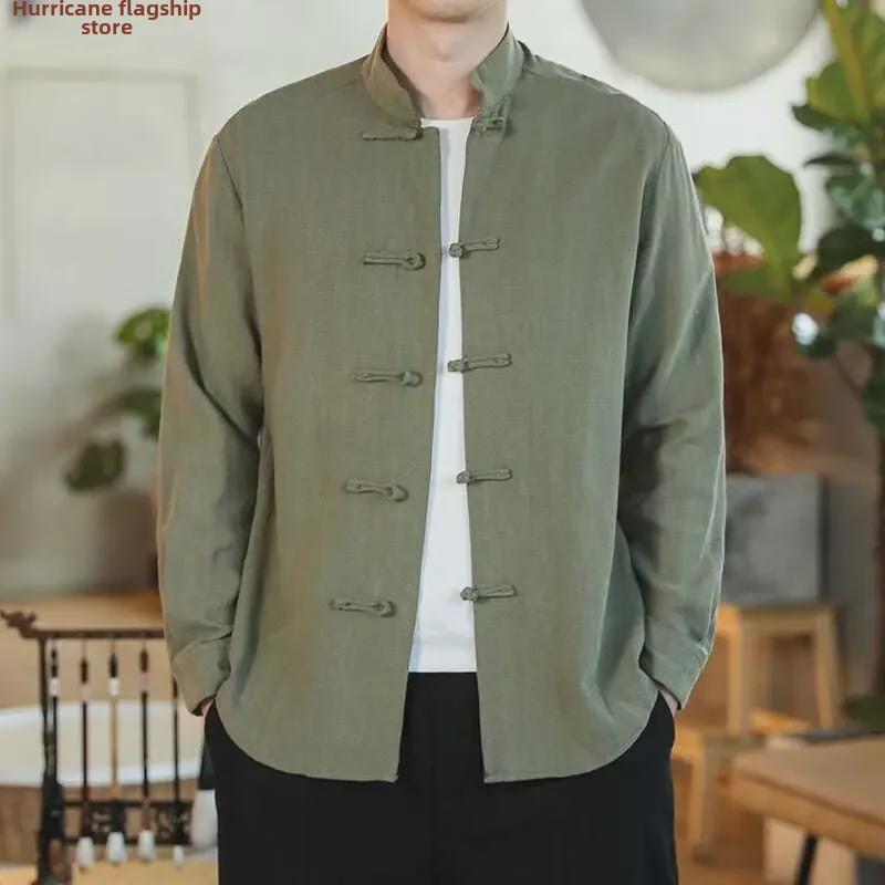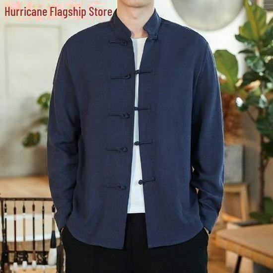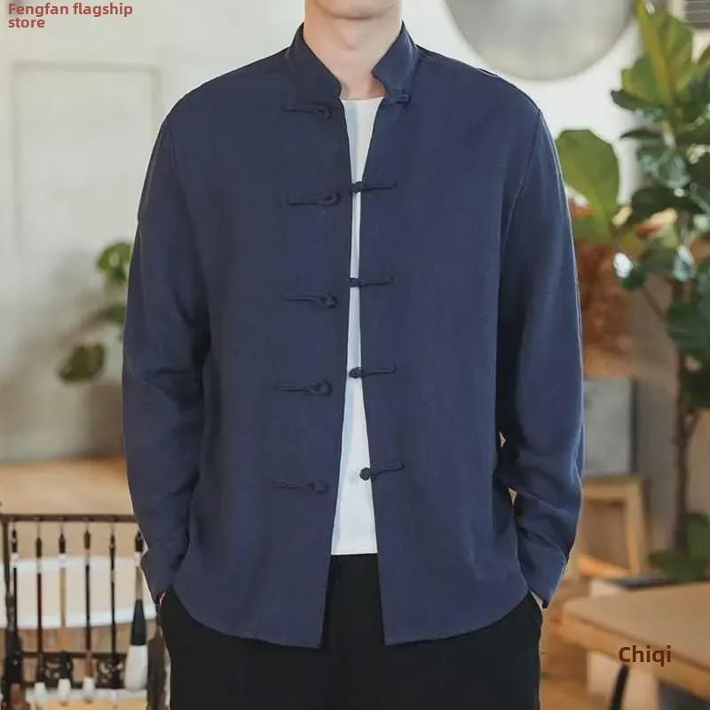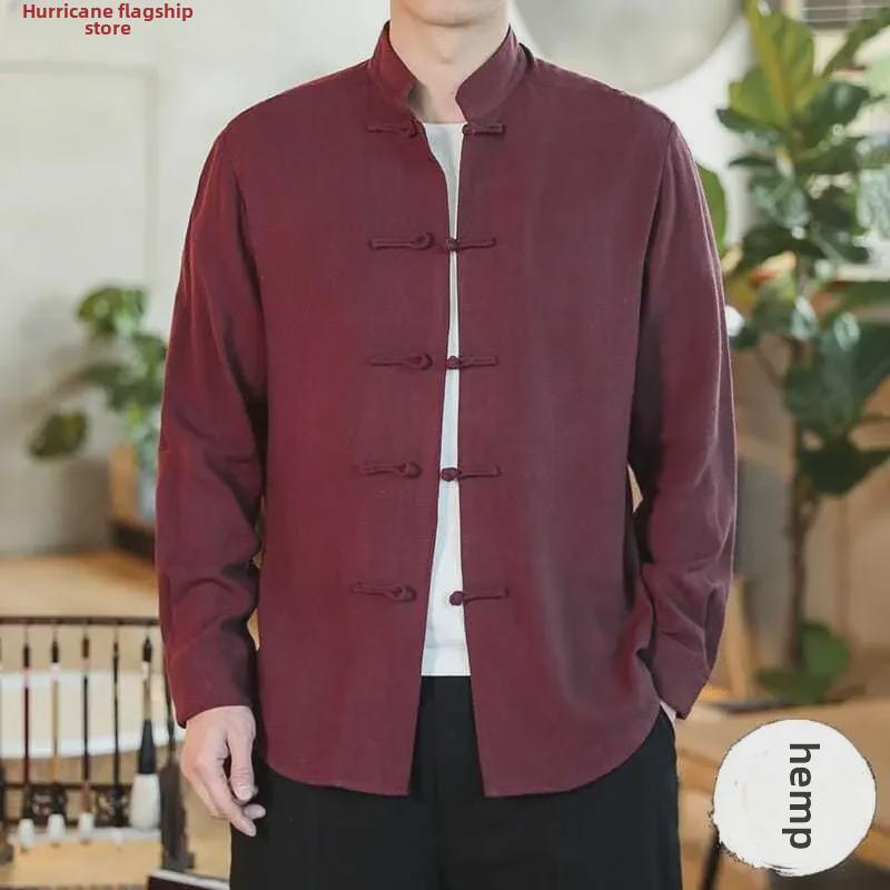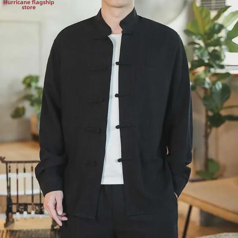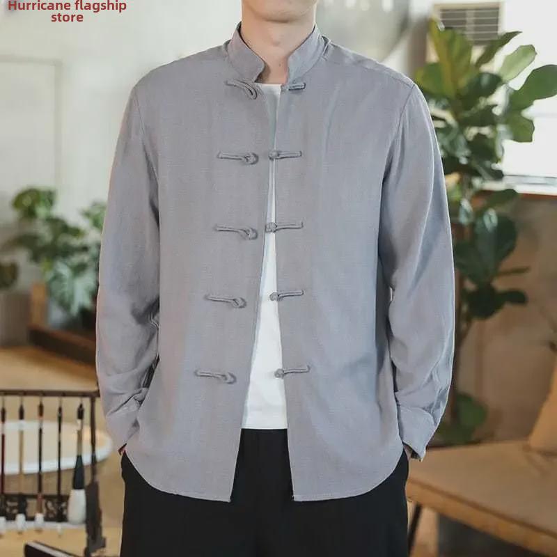 Распродажа большого размера ретро китайская рубашка в стиле Тан - мужская с длинным рукавом осенняя повседневная в стиле монах