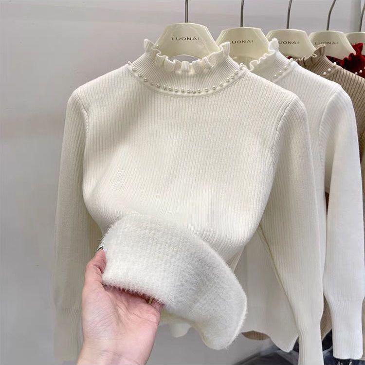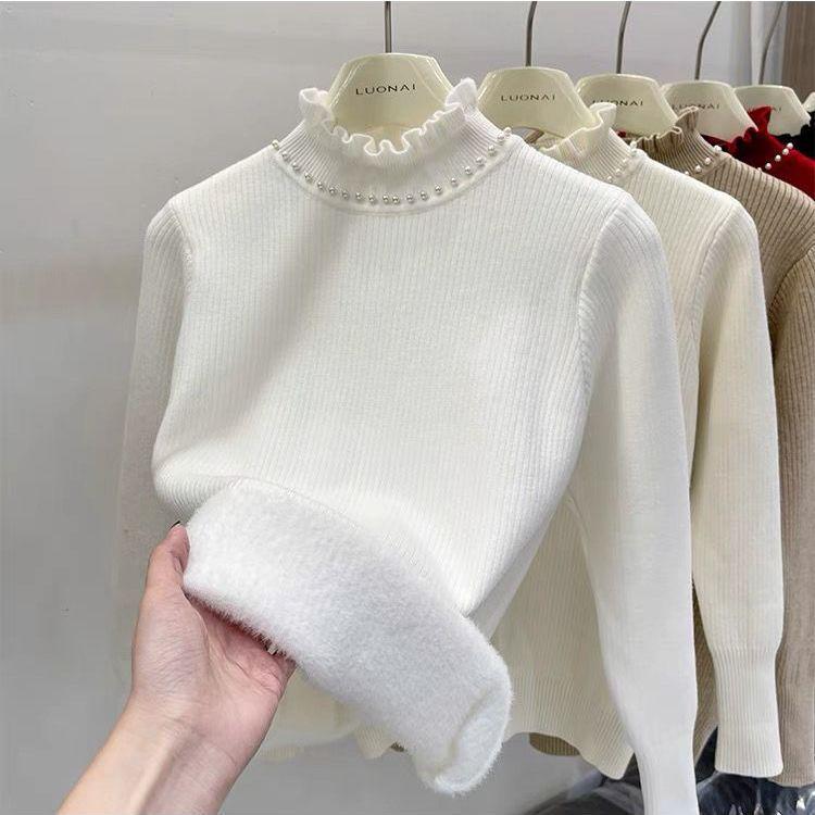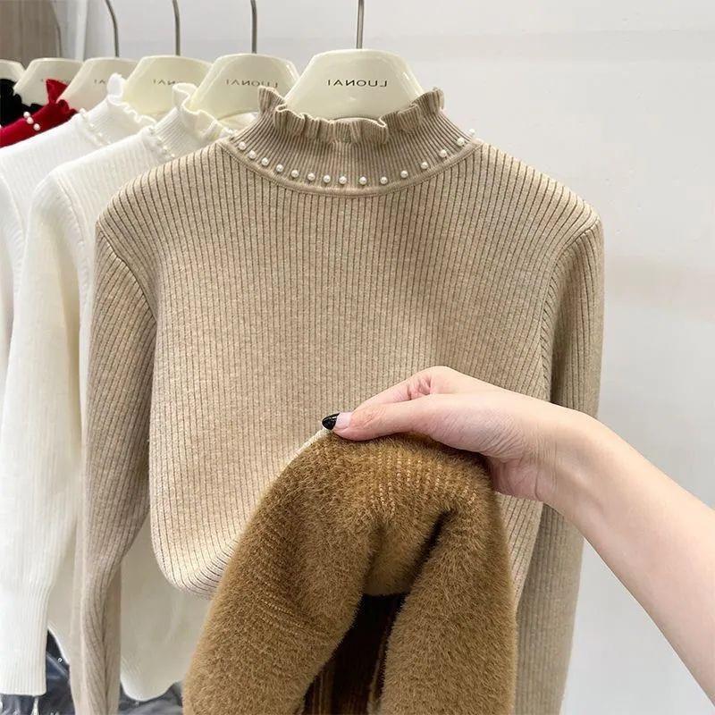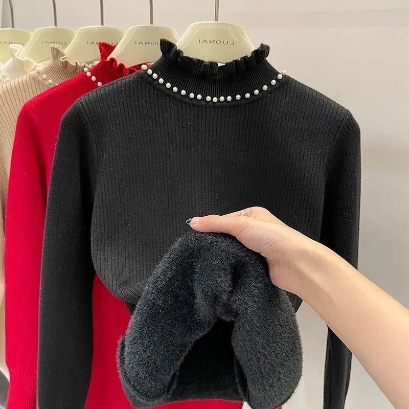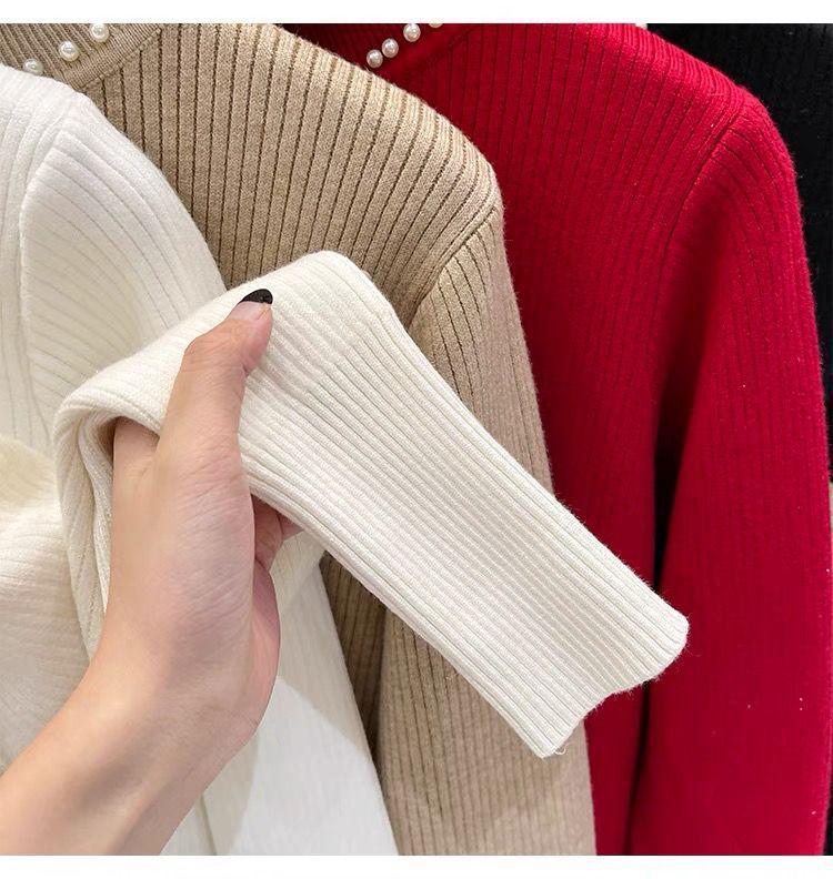Женский свитер с бархатным воротником и бисером на осень/зиму