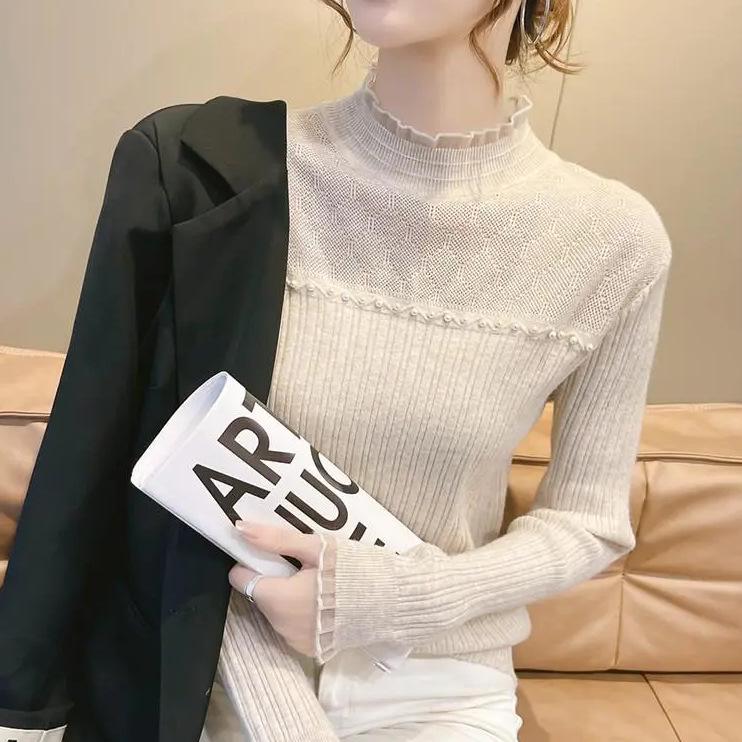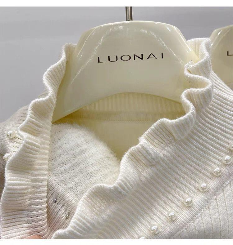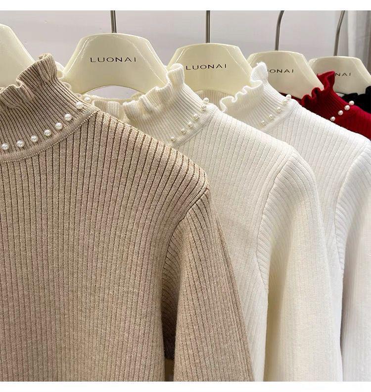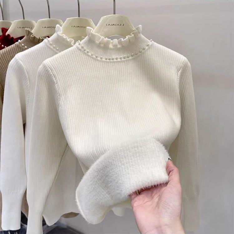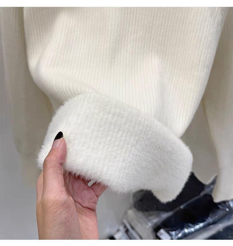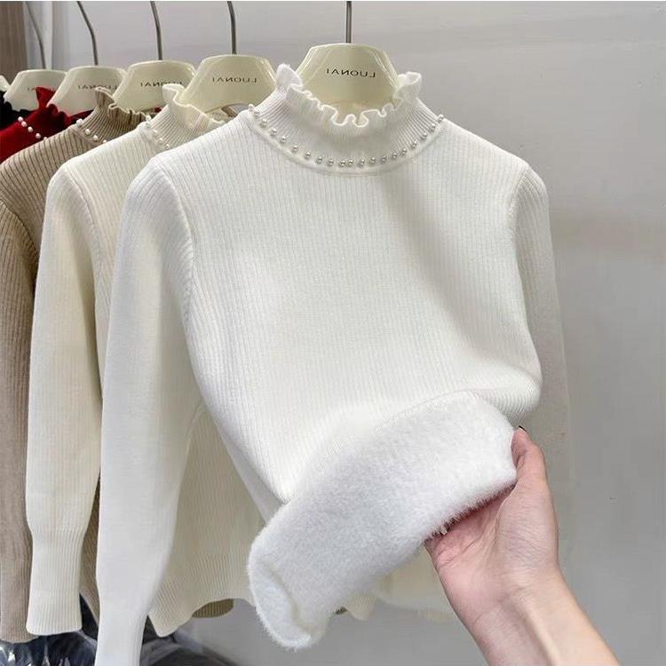 Женский свитер с бархатным воротником и бисером на осень/зиму
