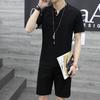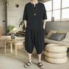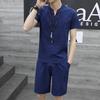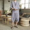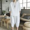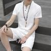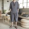 Мужской льняной костюм в китайском стиле с короткими рукавами в стиле Тан и комплект из двух предметов в стиле ханьфу в стиле Чжуншань-дзен