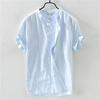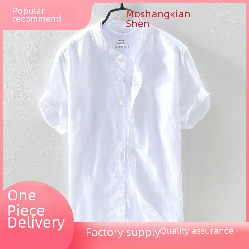 Мужская белая льняная рубашка с коротким рукавом и воротником-стойкой, свободного кроя, легкий летний хлопок. — купить товар онлайн с бесплатной доставкой по всему миру!