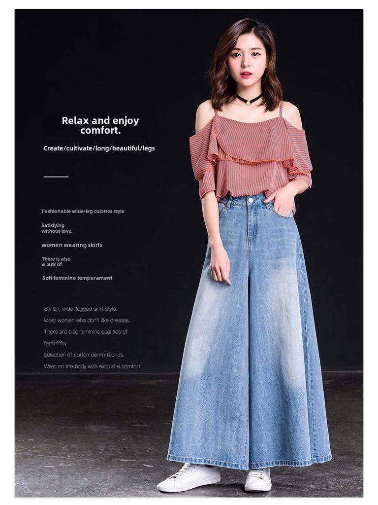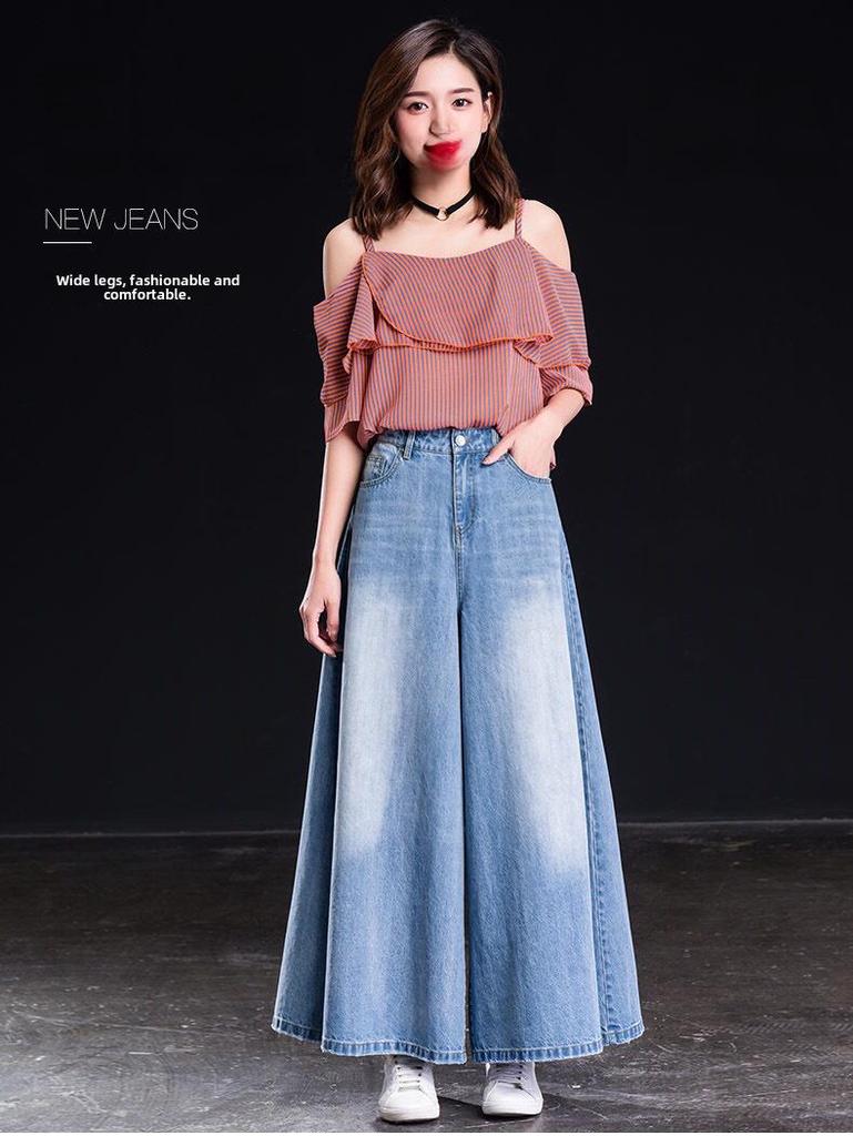 Весна 2023 г. Женские джинсы с высокой талией и широкими штанинами, юбка и брюки