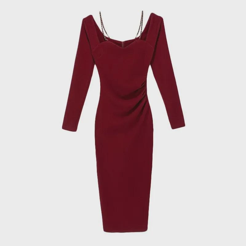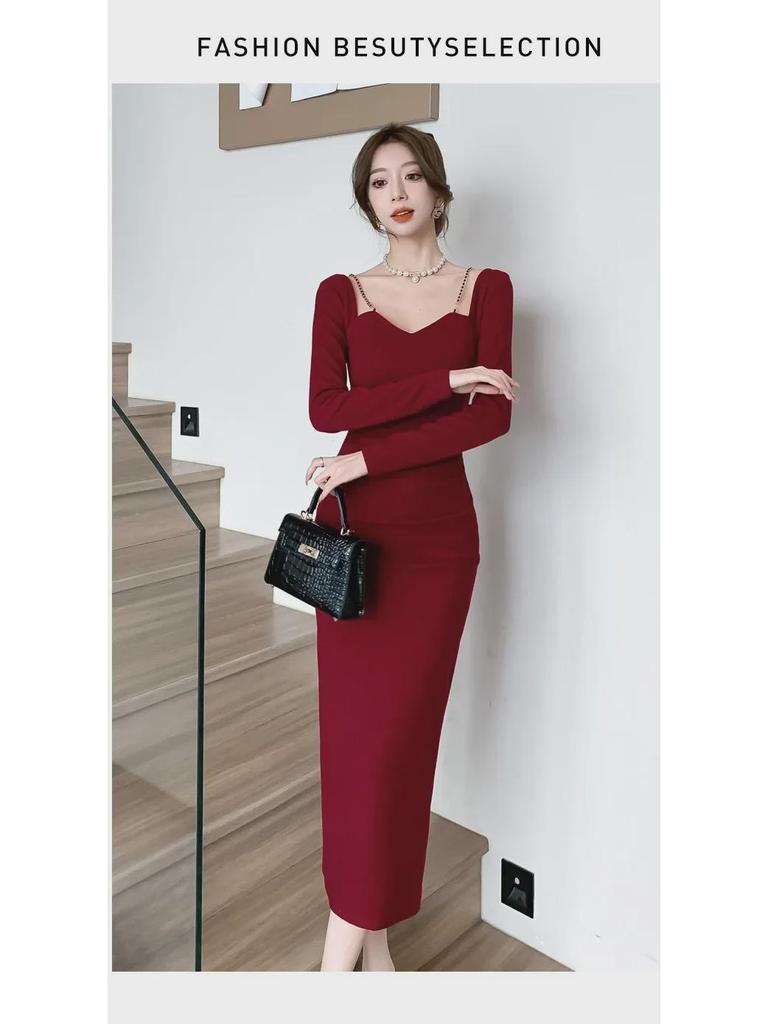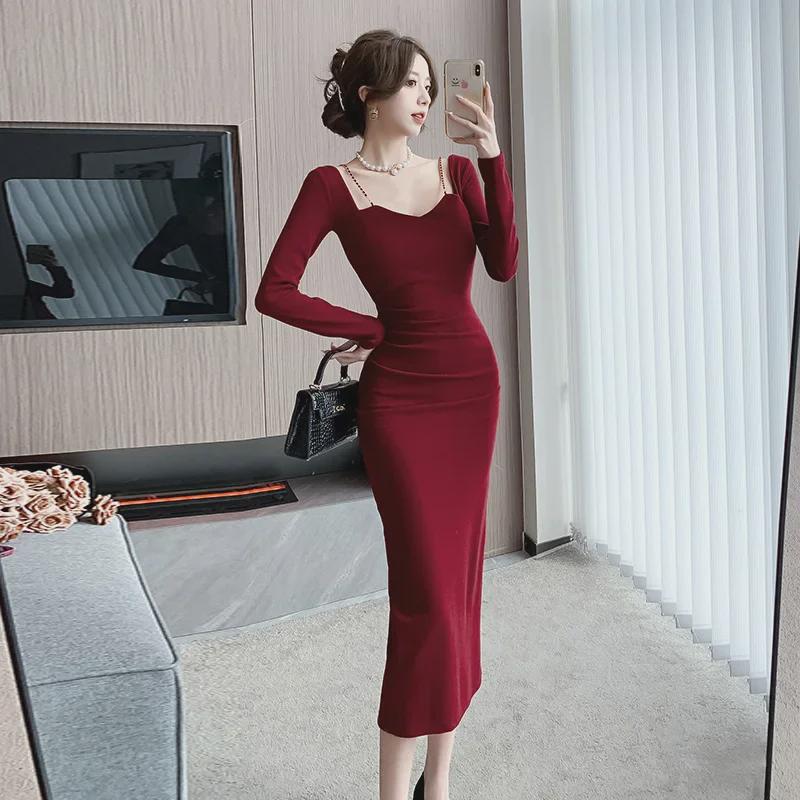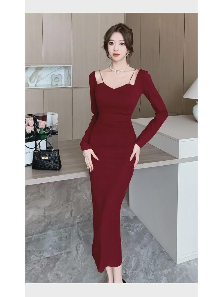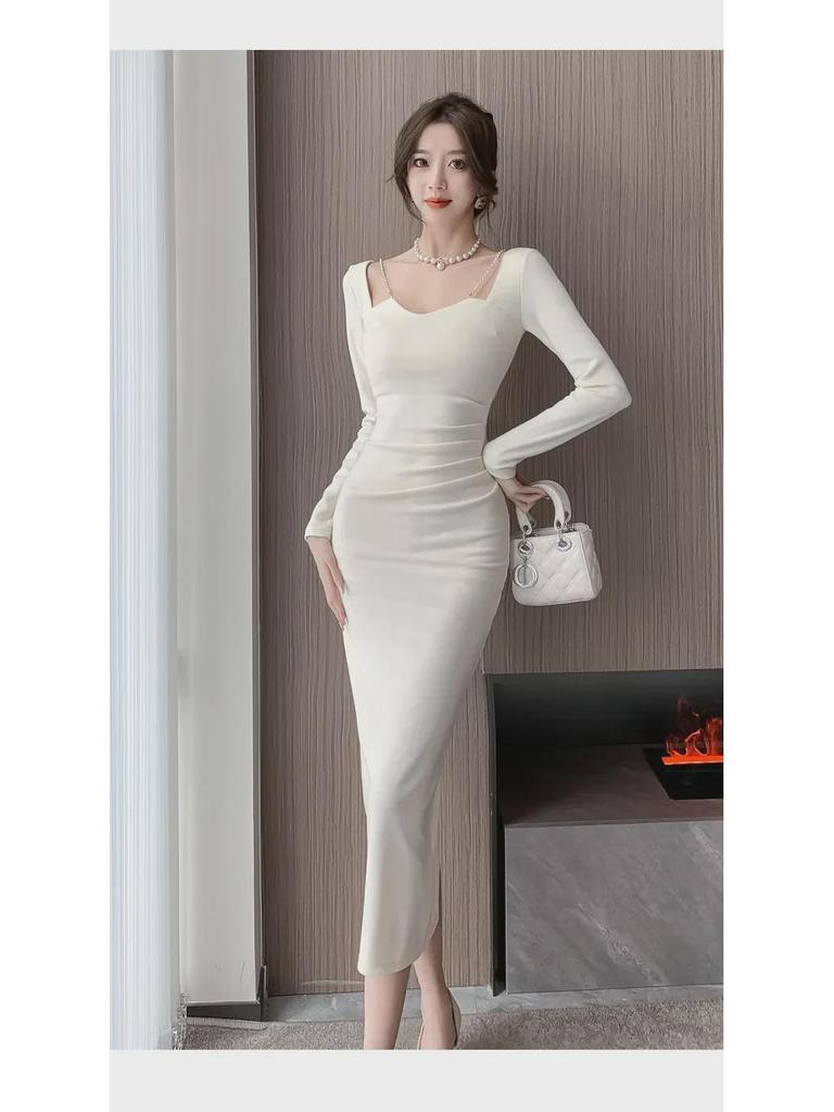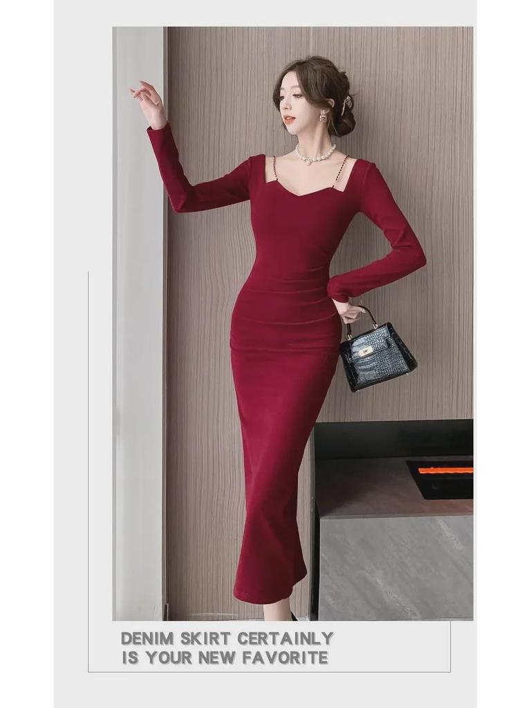 Шикарное вечернее платье с французским квадратным вырезом и разрезом