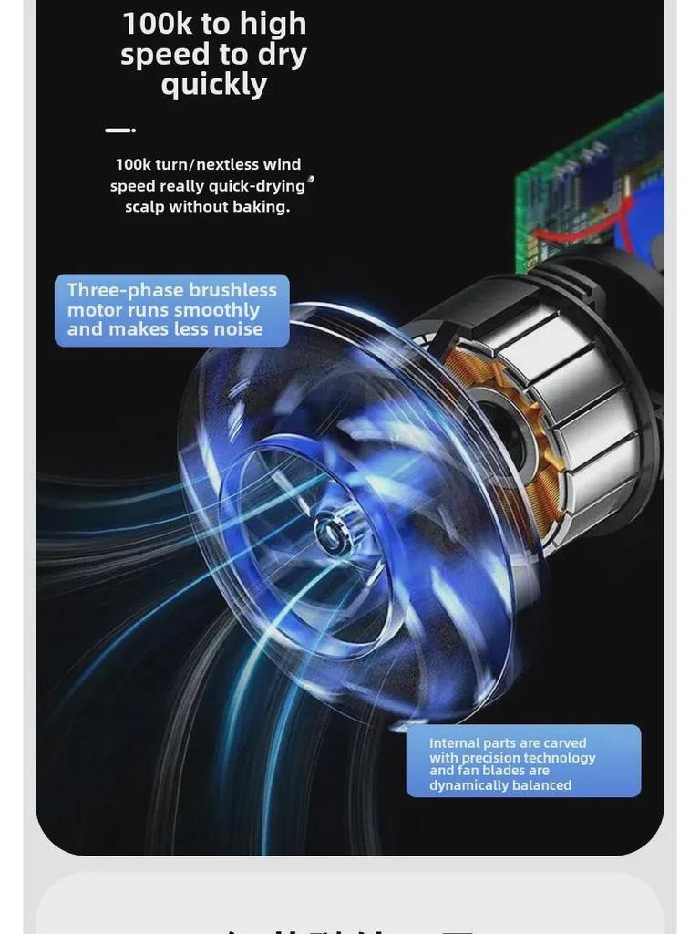 Беспроводной фен высокой мощности с синим светом для использования дома и в общежитии