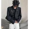 Мужская весна 2023 темная короткая куртка: Модный дизайн наплечника с металлической молнией