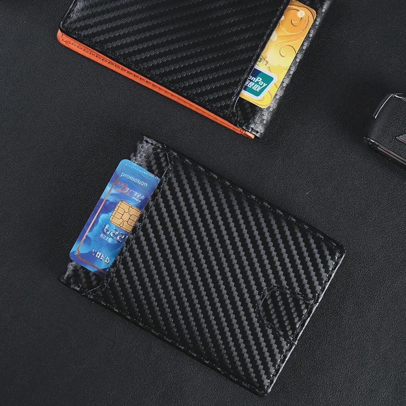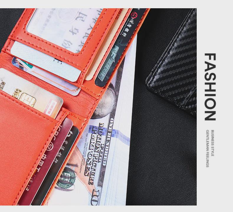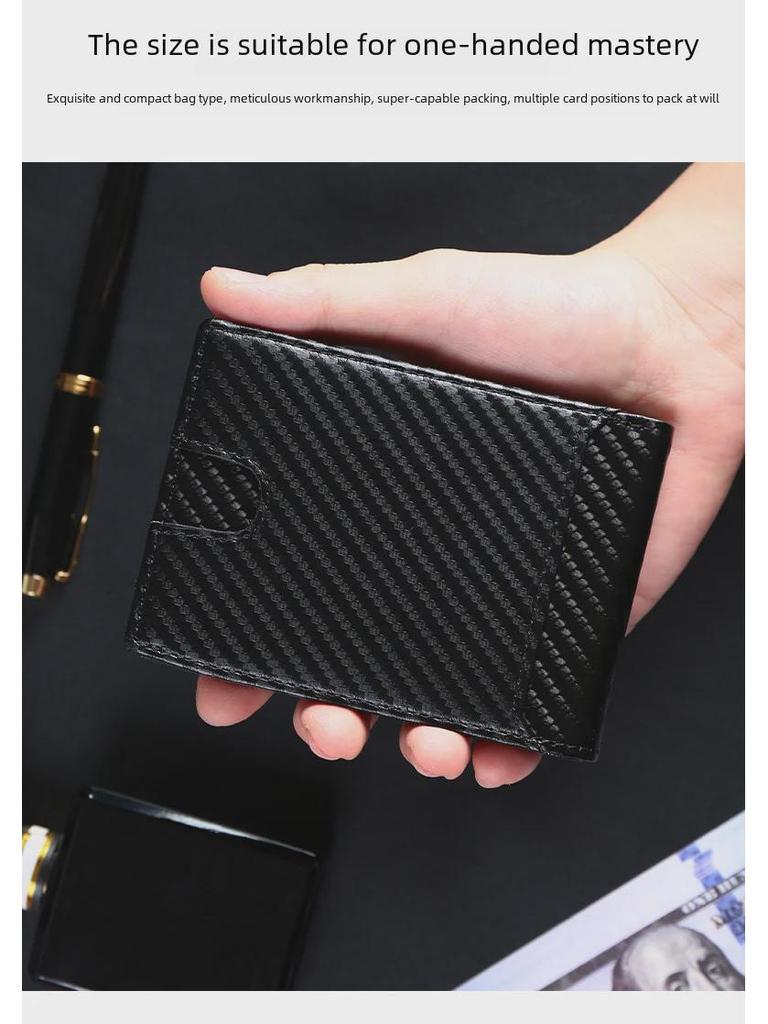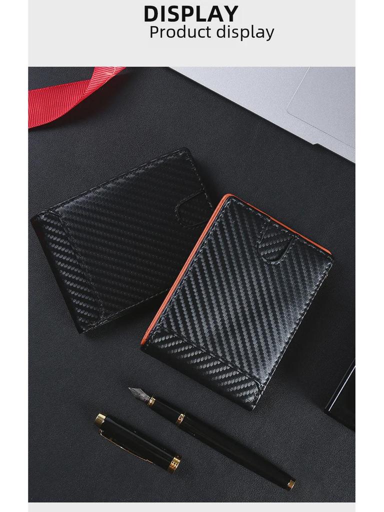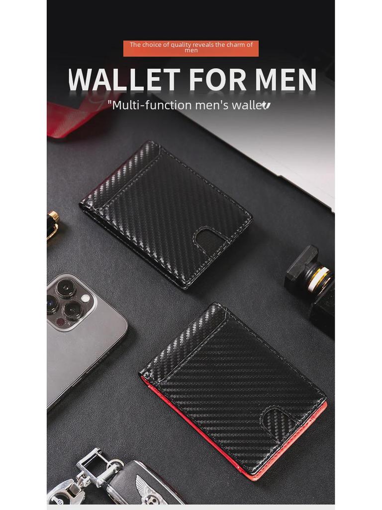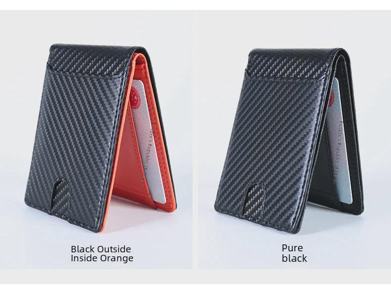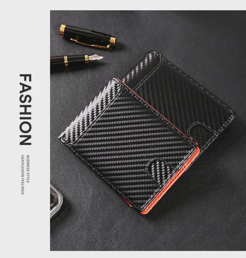 Мужской кошелек из углеродного волокна сложенный в два раза с многофункциональным держателем для карт
