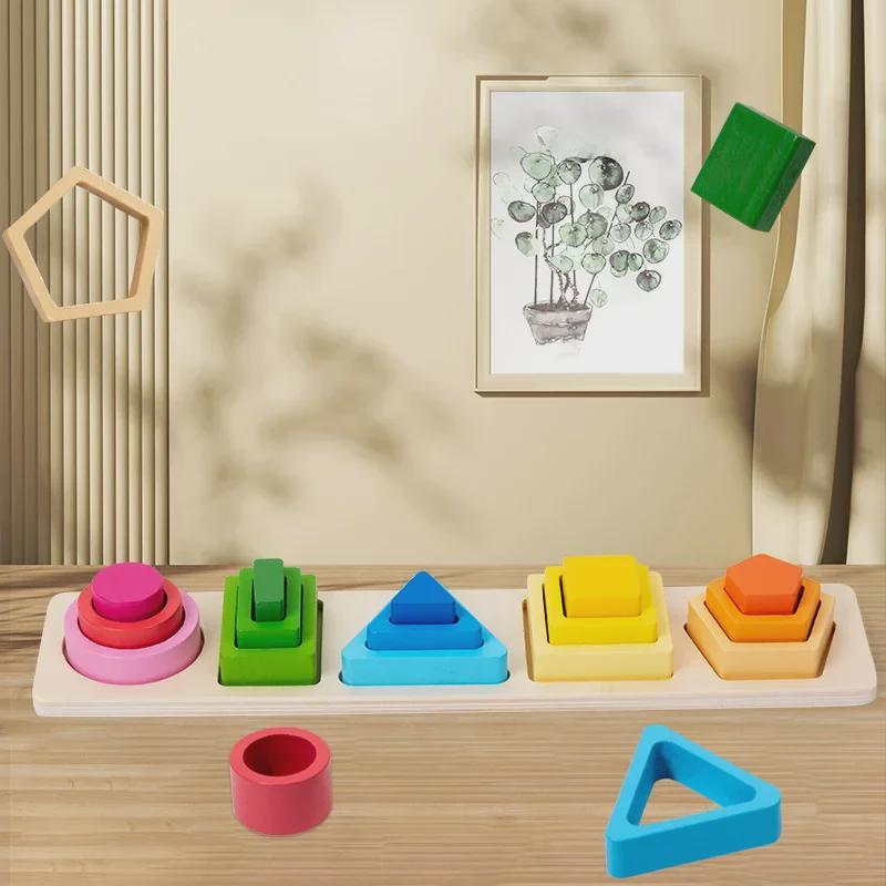 Набор красочных геометрических головоломок для раннего образования: Конструктор из пяти кубиков для развития интеллекта и сопоставления фигур для младенцев и детей.